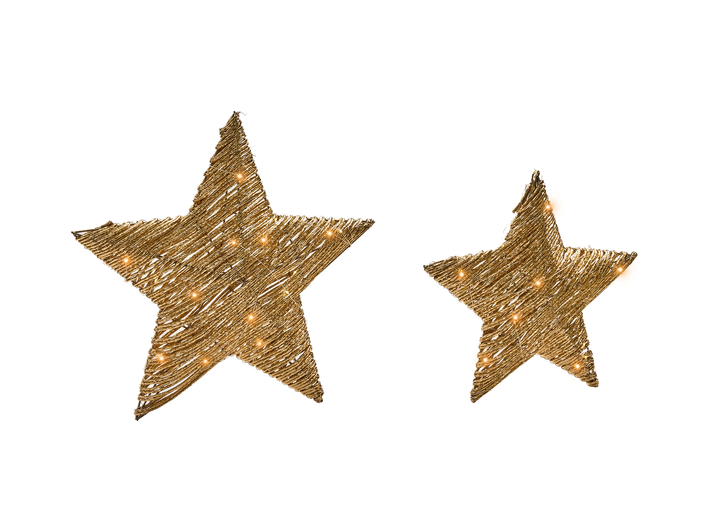 Lot de 2 décorations de Noël LED HAMPEN Étoile 24/30 cm Doré