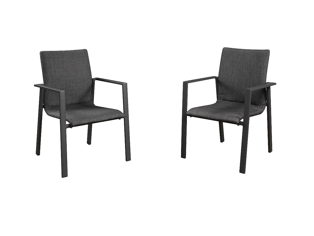 Lot de 2 fauteuils de jardin rembourrés empilables ILONI en aluminium et textilène - Anthracite