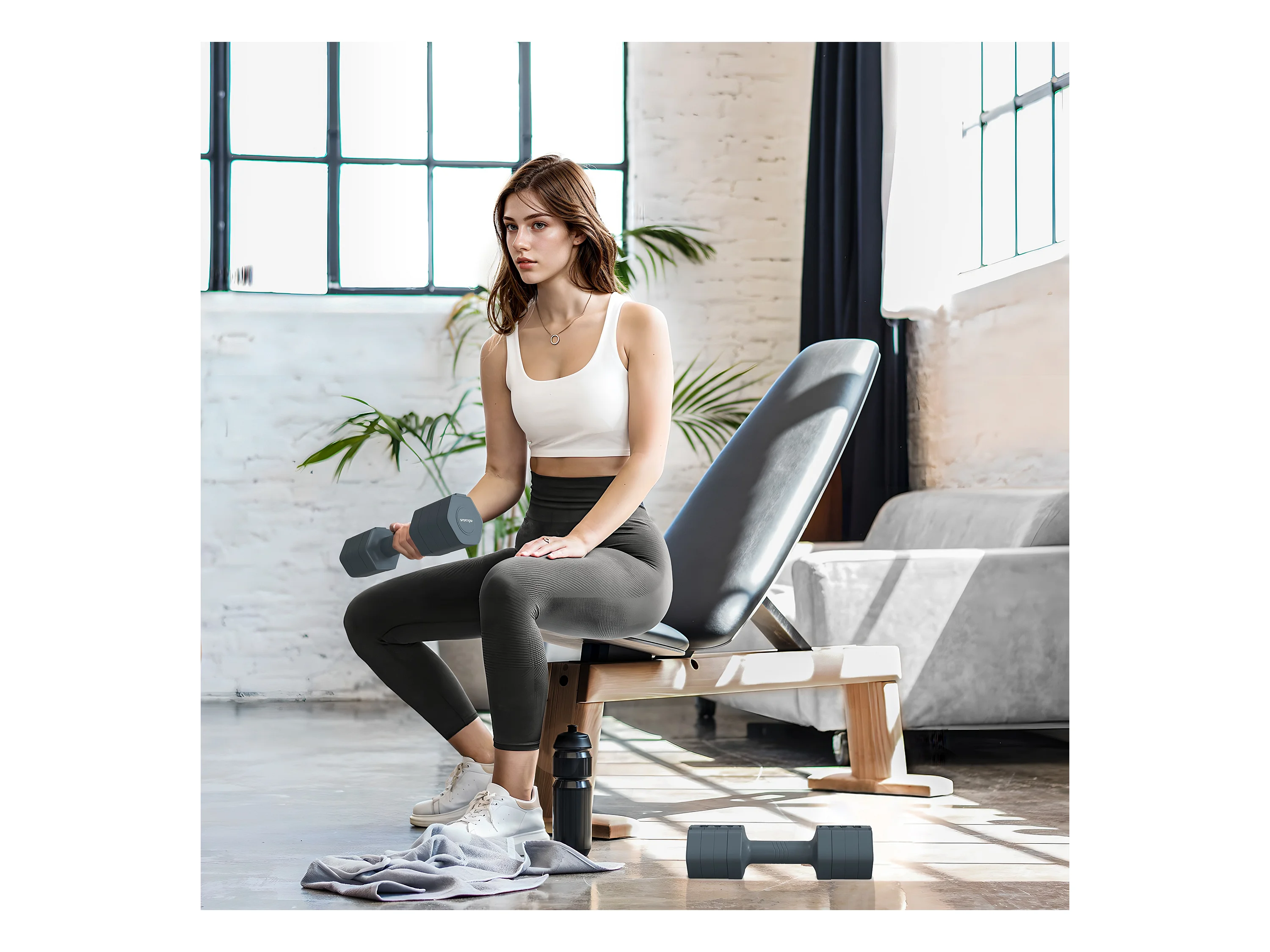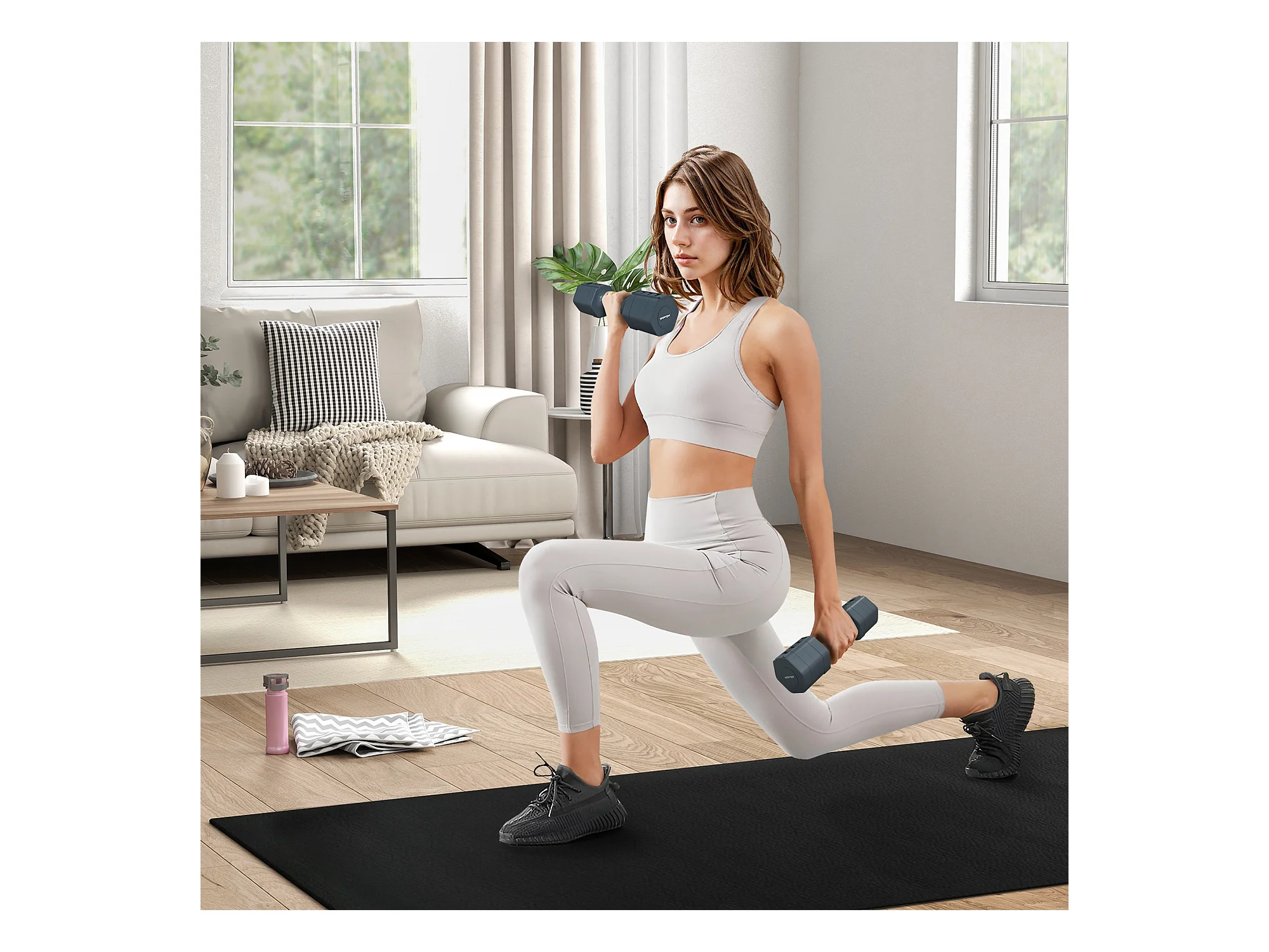Set de 2 haltères ensemble d'haltères réglables poids total 5 Kg coffre rangement inclus blanc