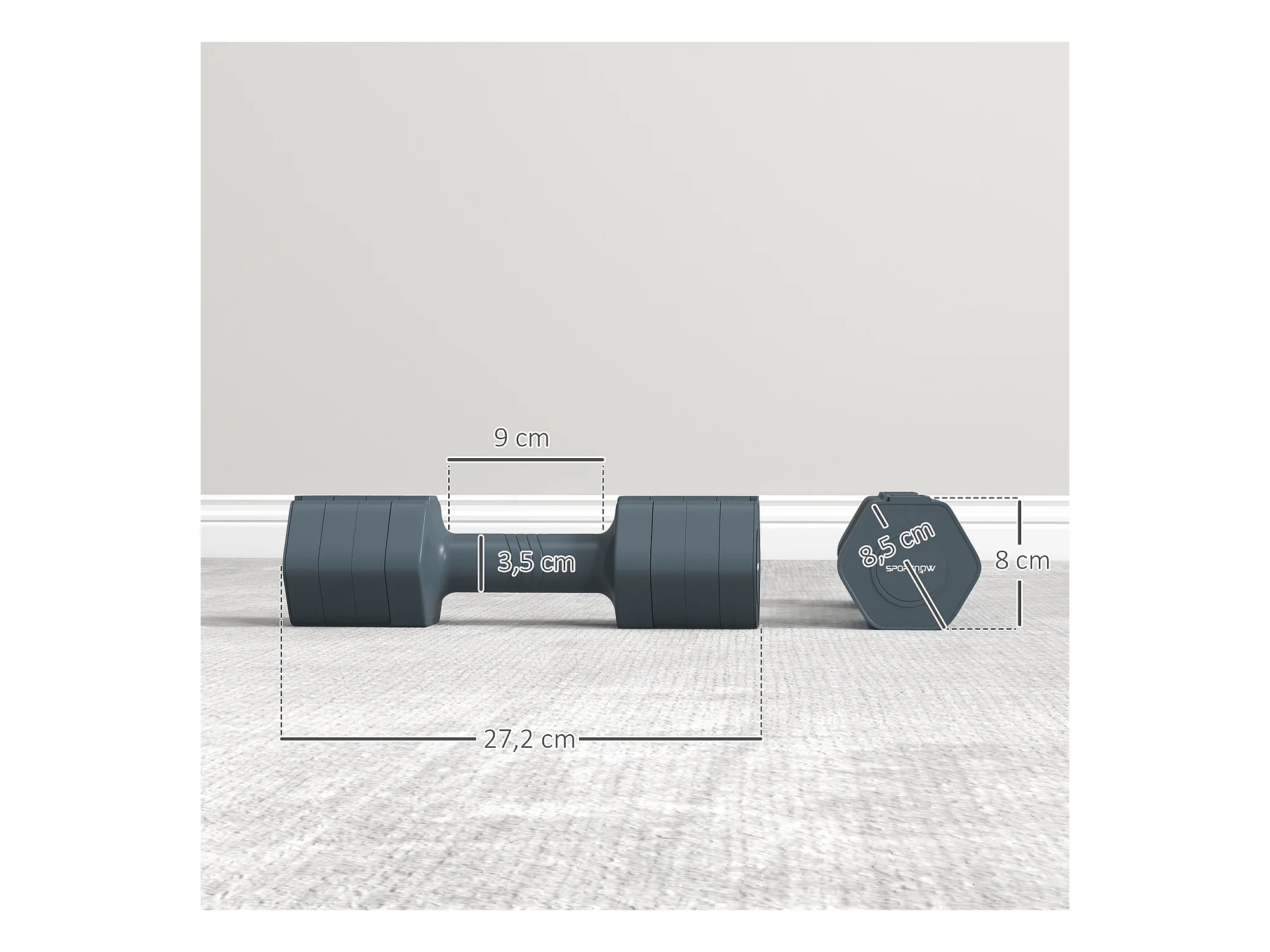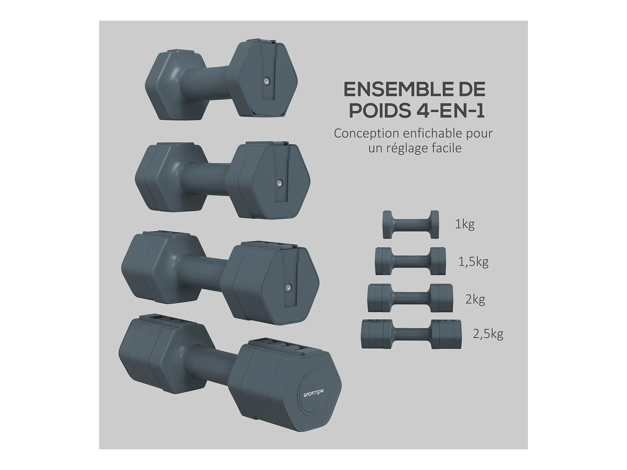 Lot de 2 haltères réglables hexagonales avec poignée antidérapante pour l'entraînement à domicile, 2 x 2.5kg gris
