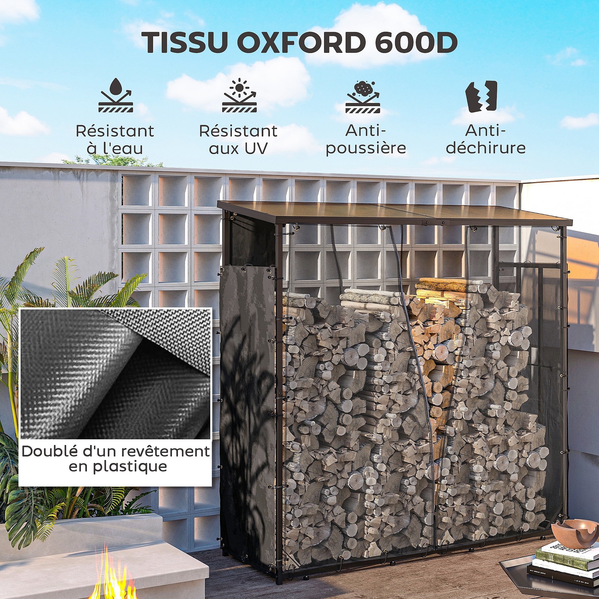 Lot de 2 housses imperméables pour bois de chauffage - housse pour abri de bois de chauffage - dim. 62L x 148H cm - Oxford 600D noir