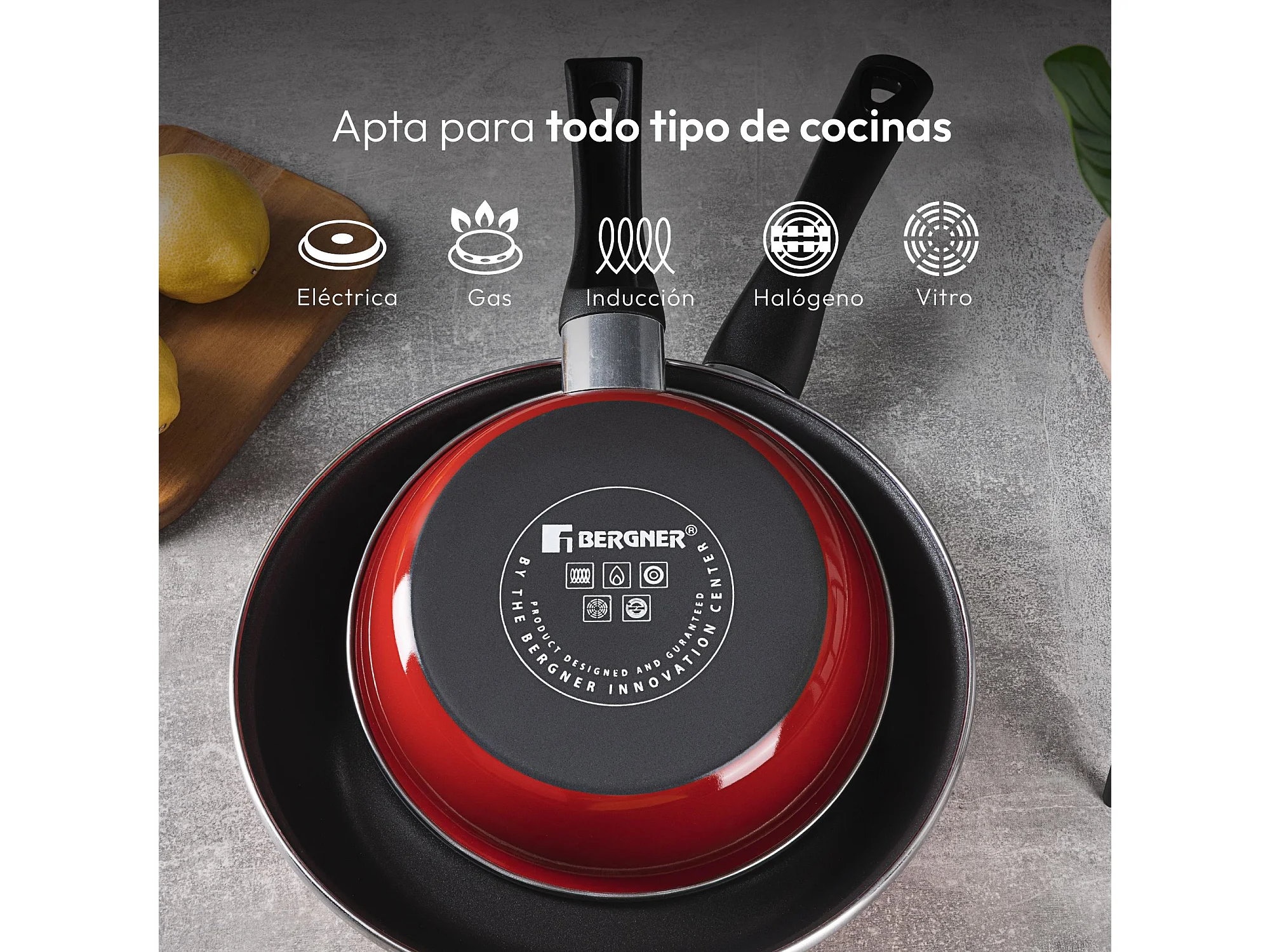 Lot de 2 poêles CLASSIQUE Ø20Ø24cm antiadhésives en aluminium forgé + ustensiles de cuisine Bergner vert