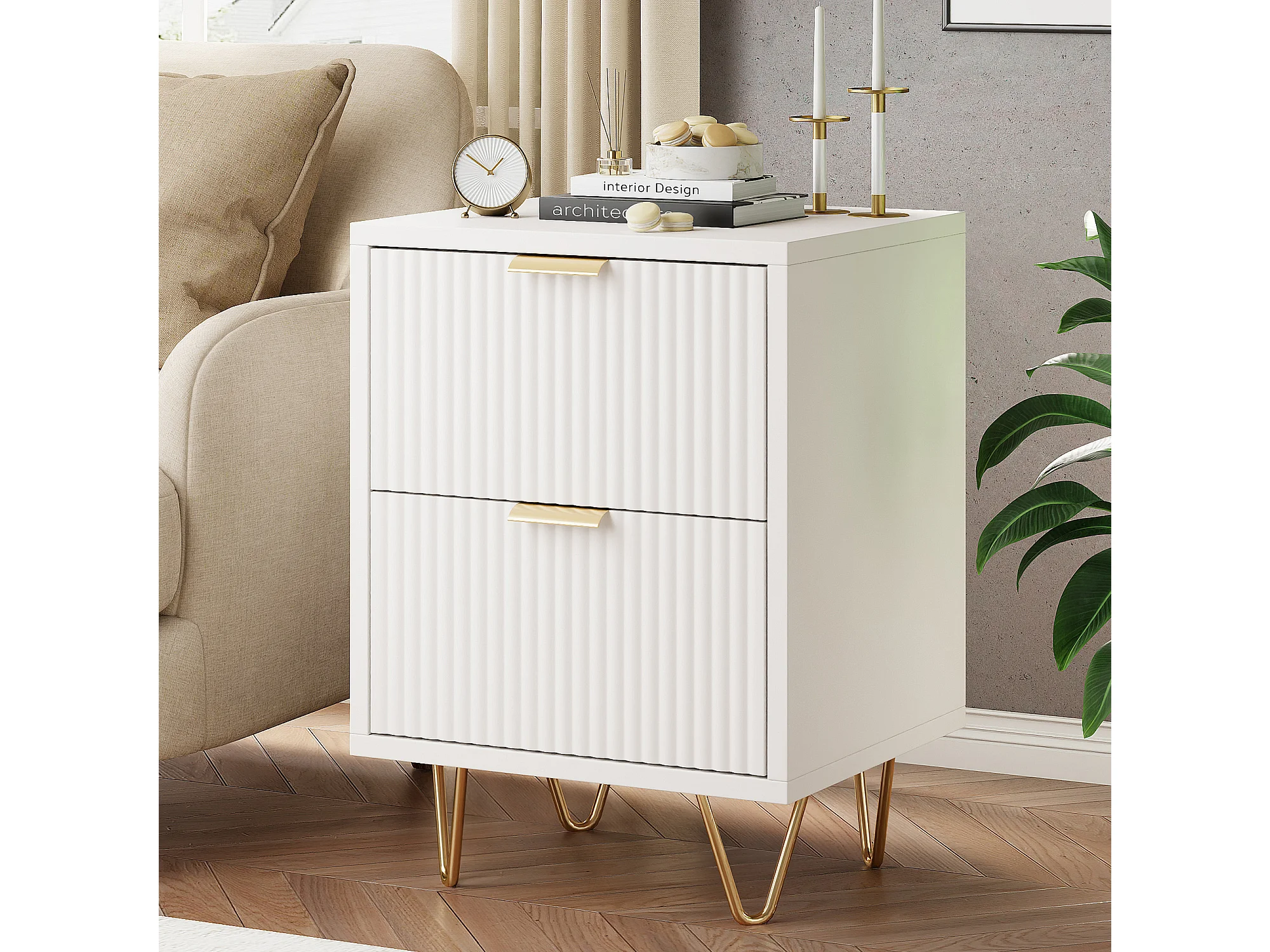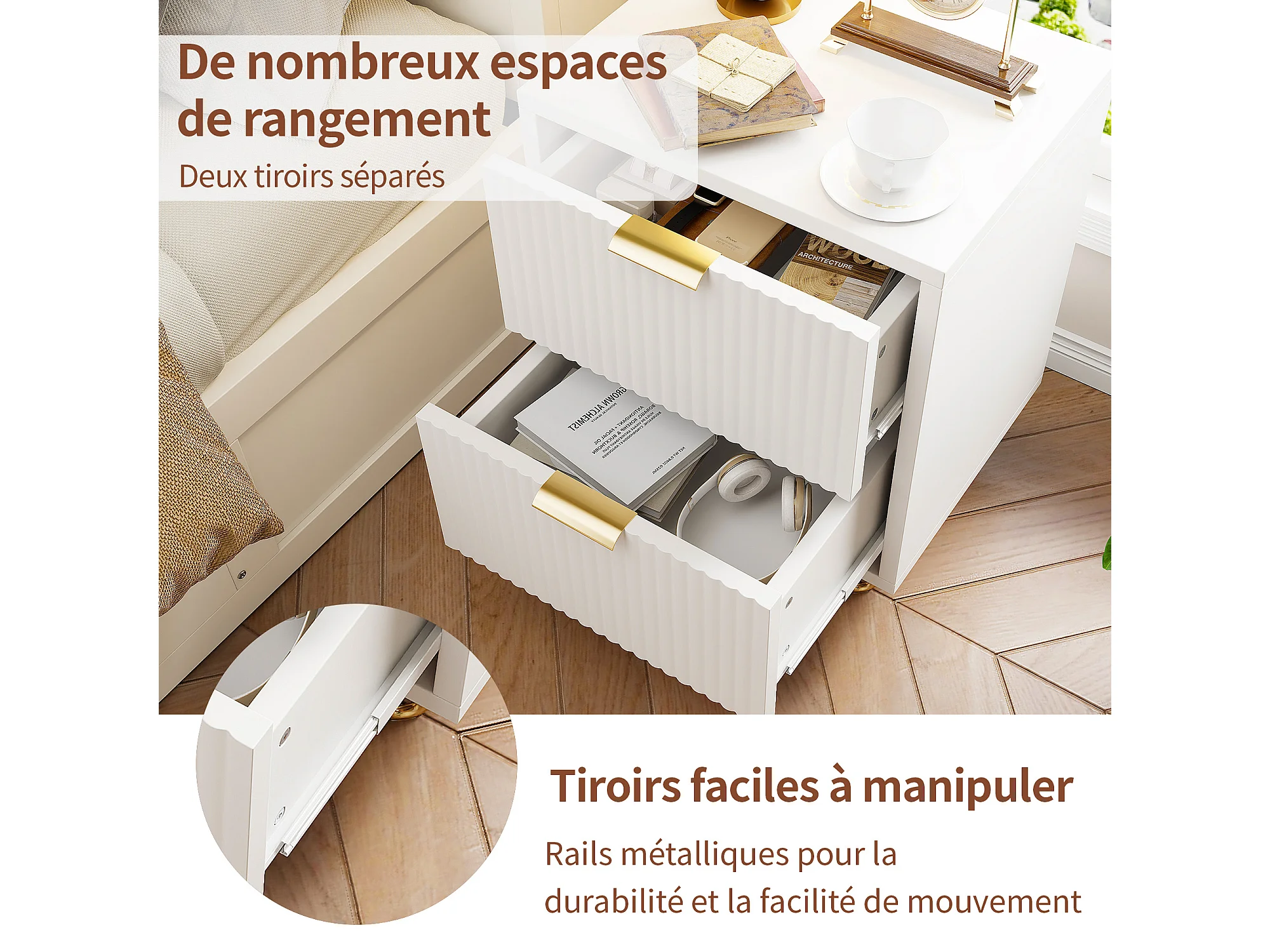 Lot de 2 Tables de Chevet Blanc, Tables de Nuit avec 2 Tiroirs, pour Chambre, Salon, 49x 29 x 47 cm