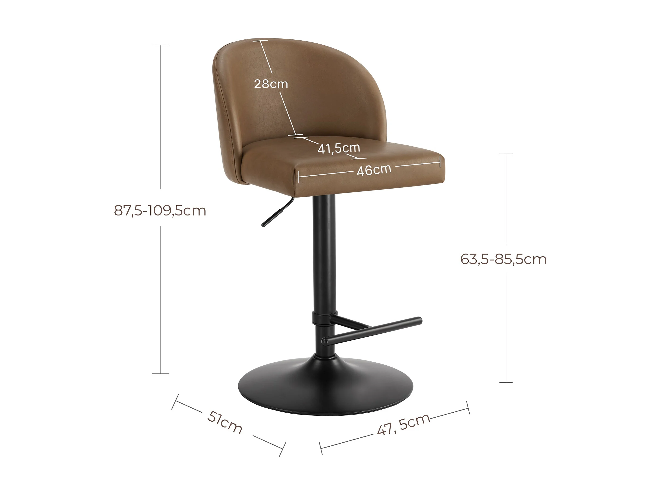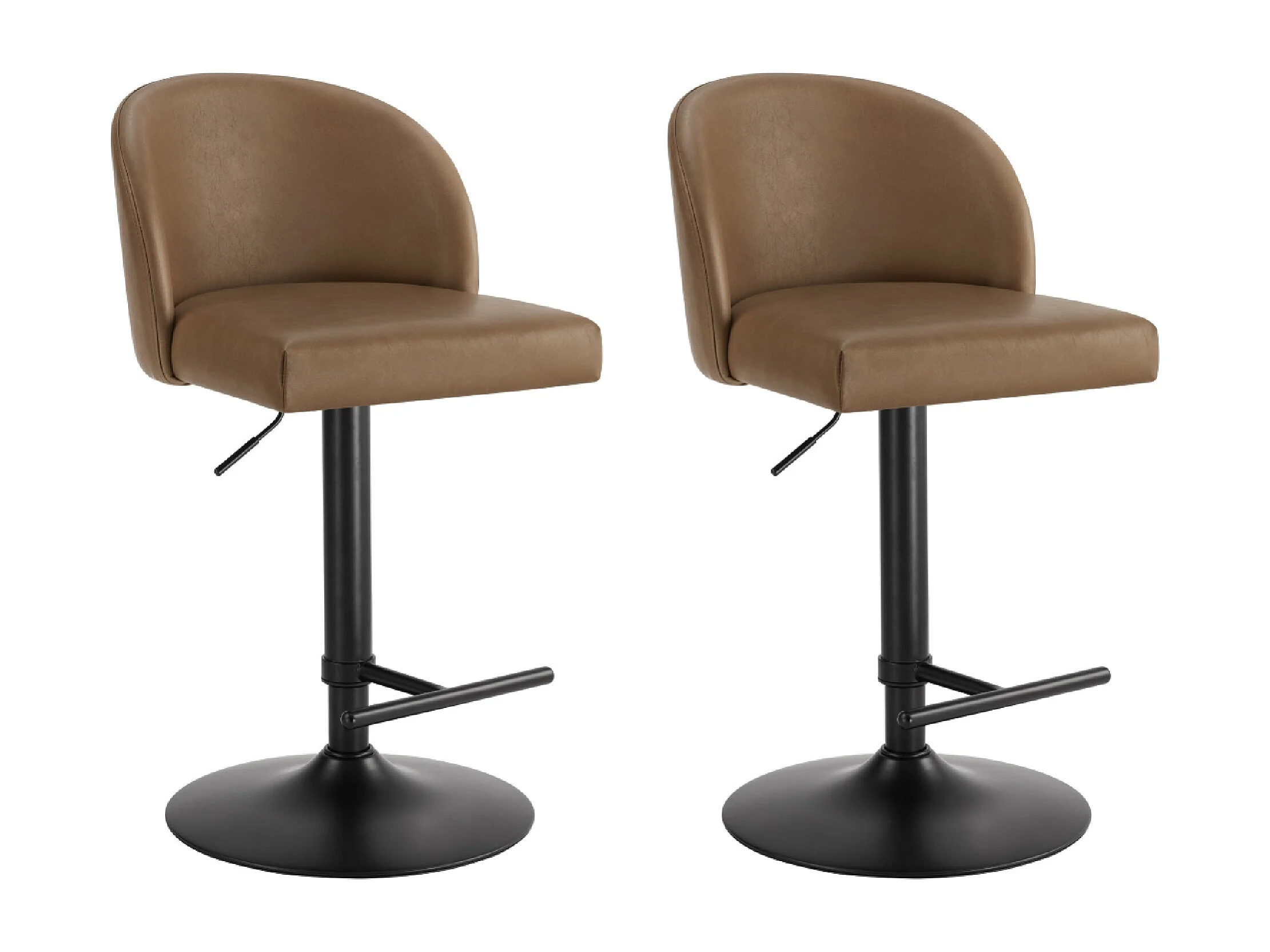 Lot de 2 Tabouret de Bar Réglable en Hauteur, Revêtement en PU, Rotatif sur 360°avec Repose-Pieds