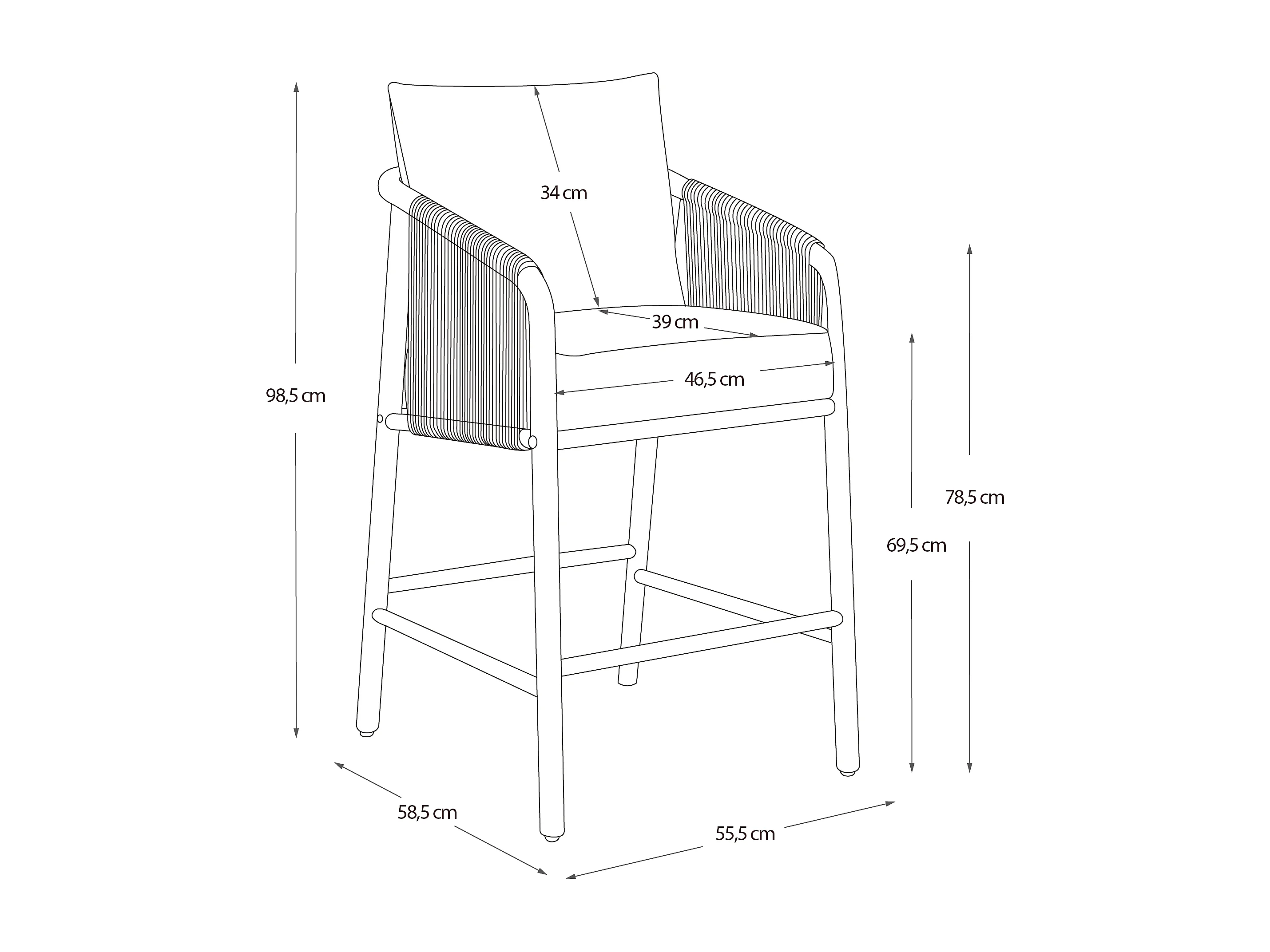 Lot de 2 tabourets de bar, assise rembourrée tissu, dossier accoudoirs,pour îlot et bar-Marron