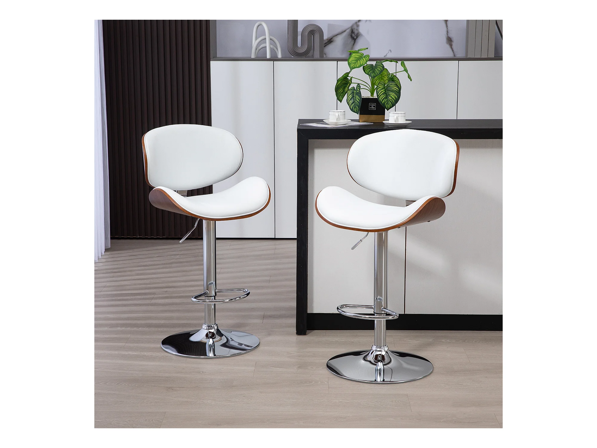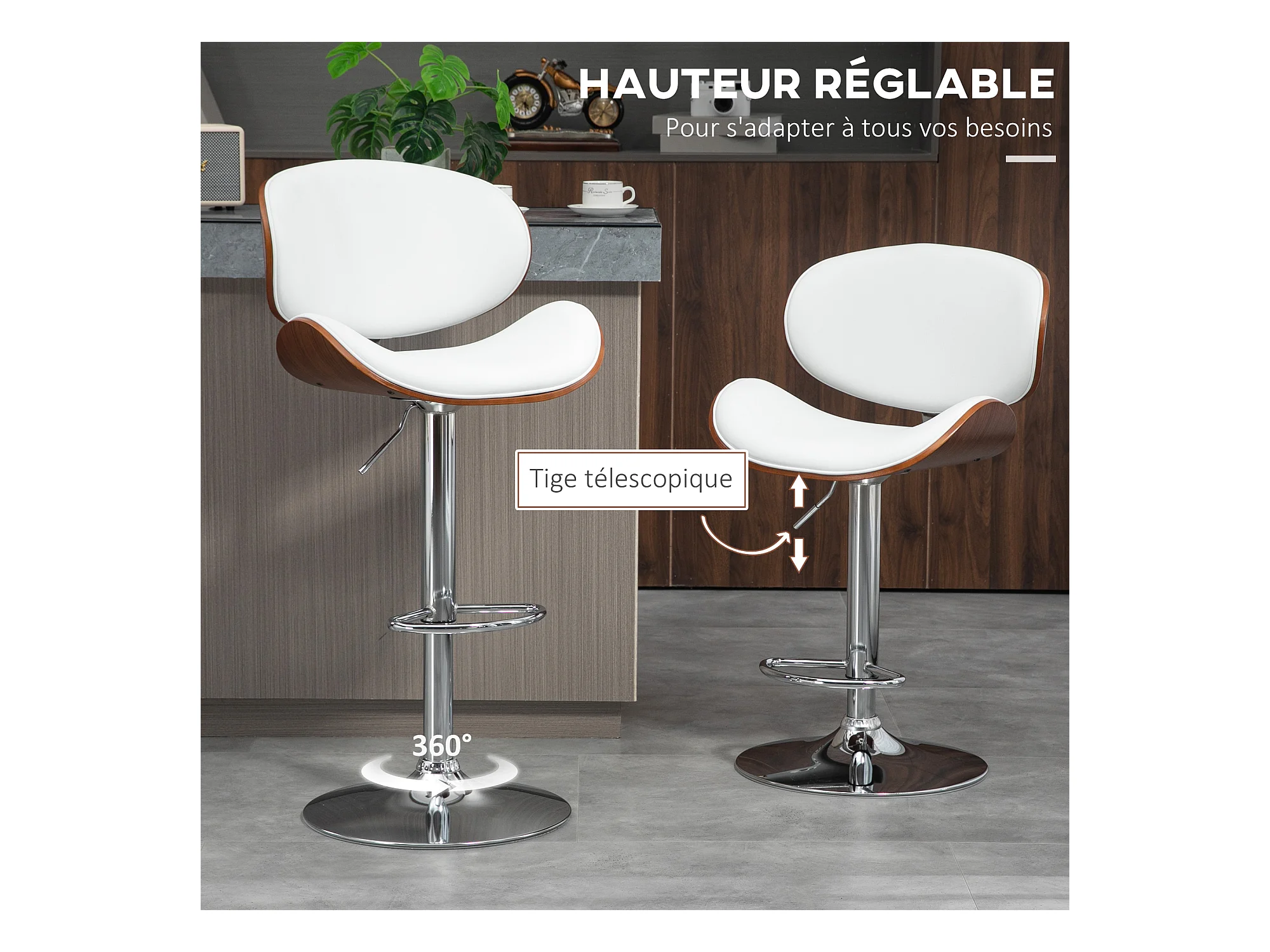 Lot de 2 tabourets de bar design contemporain hauteur d'assise réglable 62-82 cm pivotant 360° bois revêtement synthétique blanc