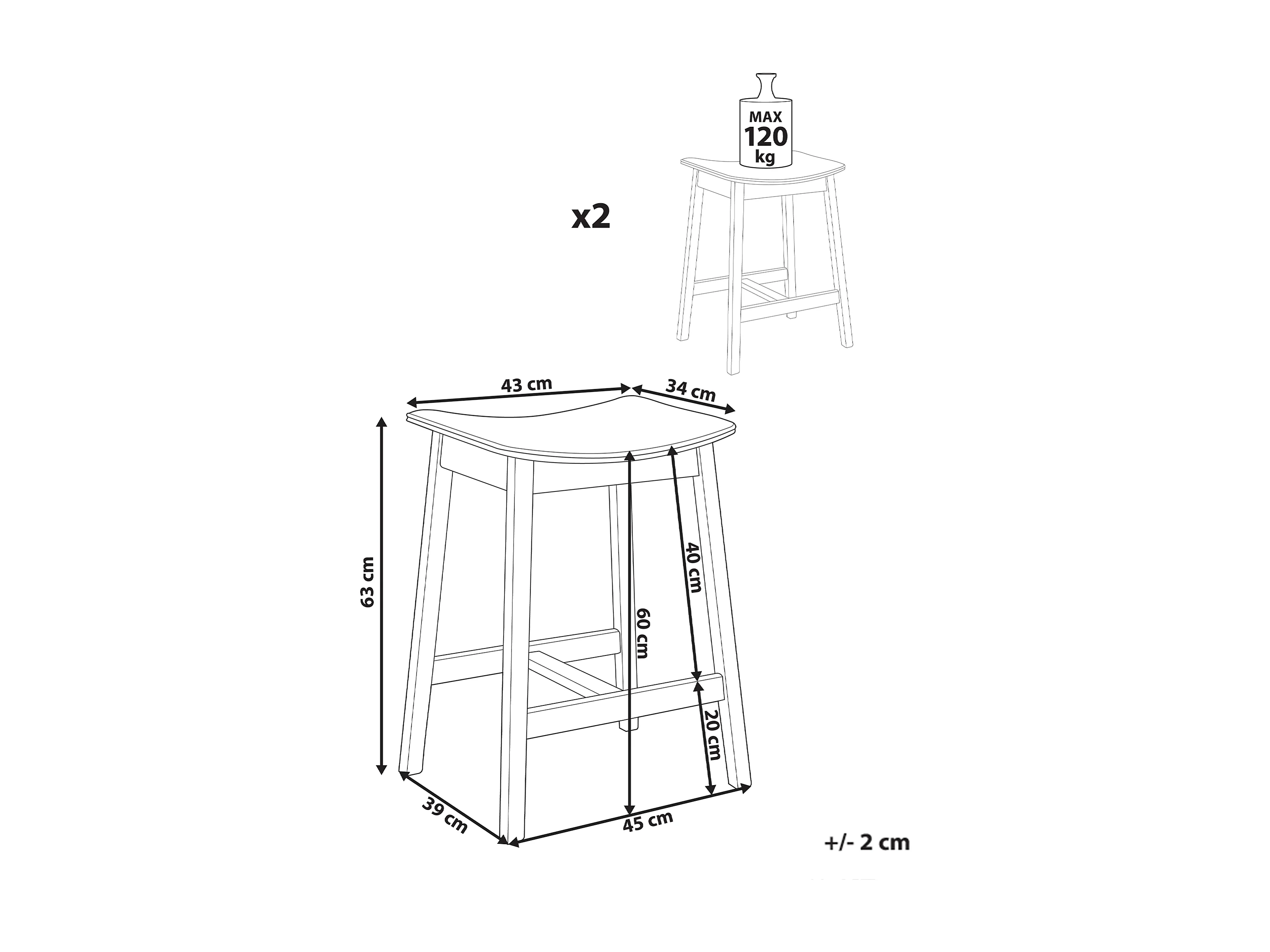 Lot de 2 tabourets de bar DIXON Bois Blanc cassé/marron foncé