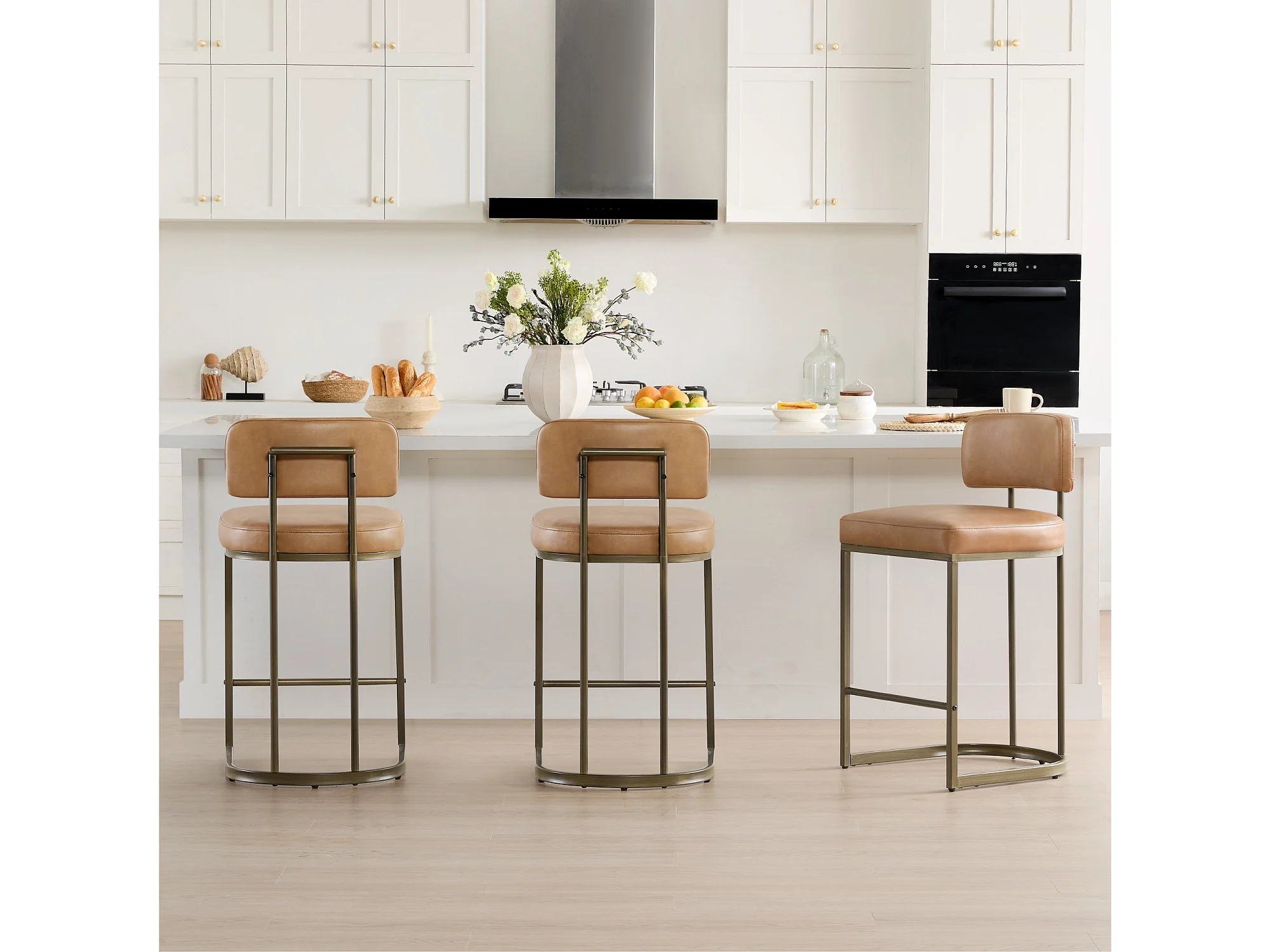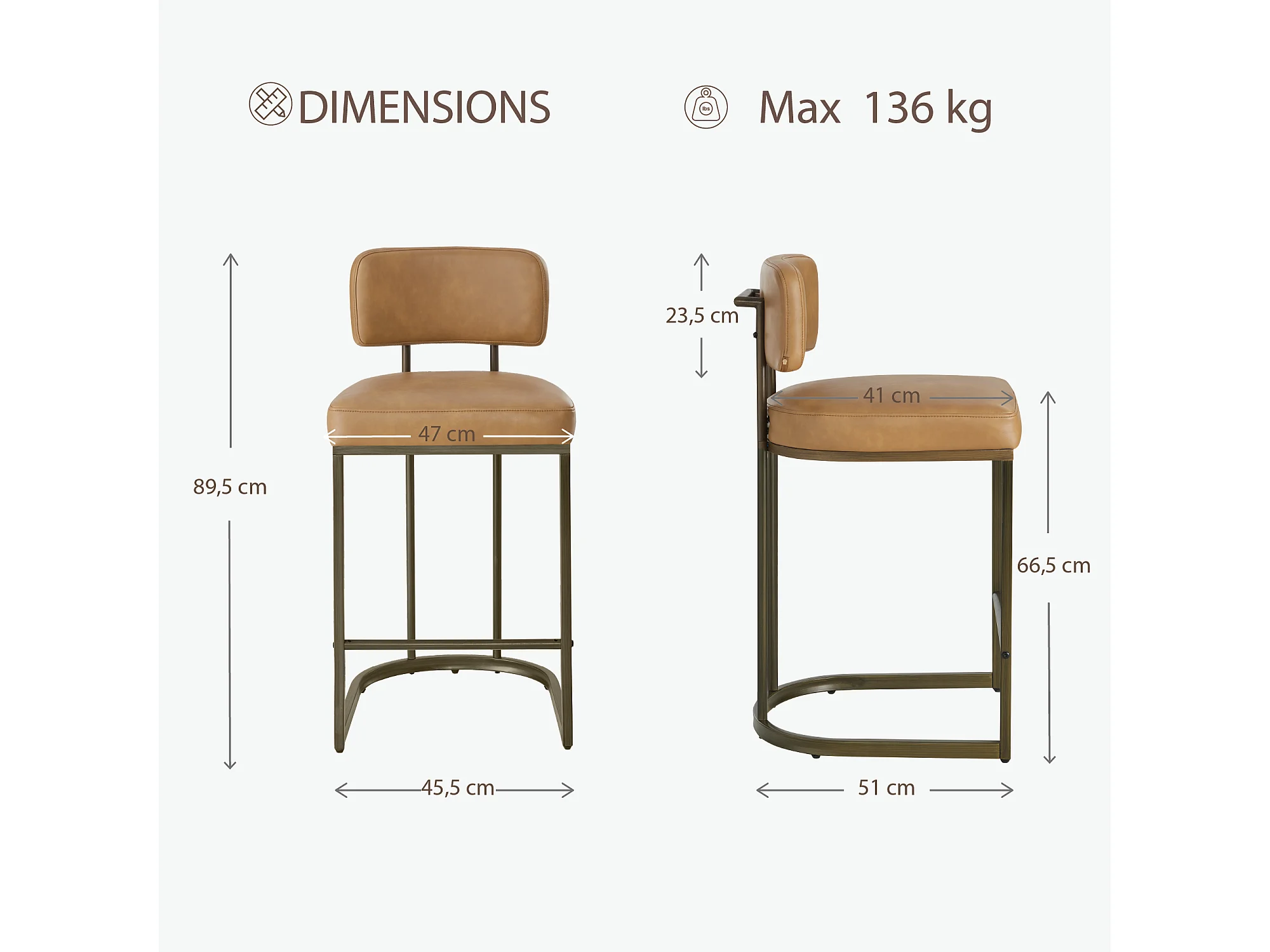 Lot de 2 tabourets de bar hauteur comptoir 66 cm, similicuir, pour îlot-Marron