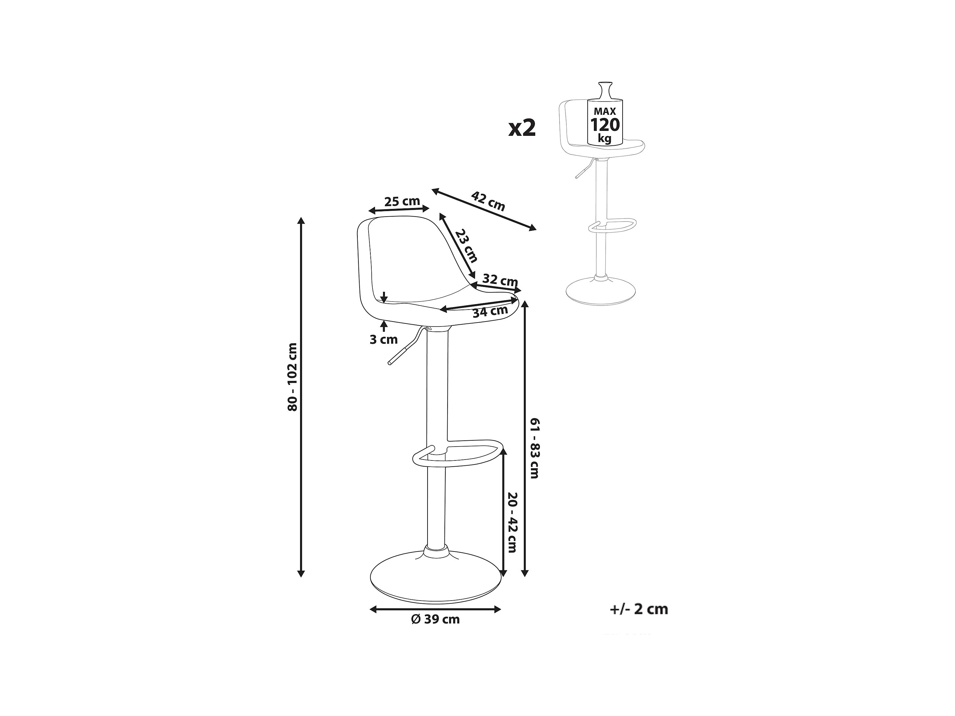 Lot de 2 chaises de bar FRANKS Beige