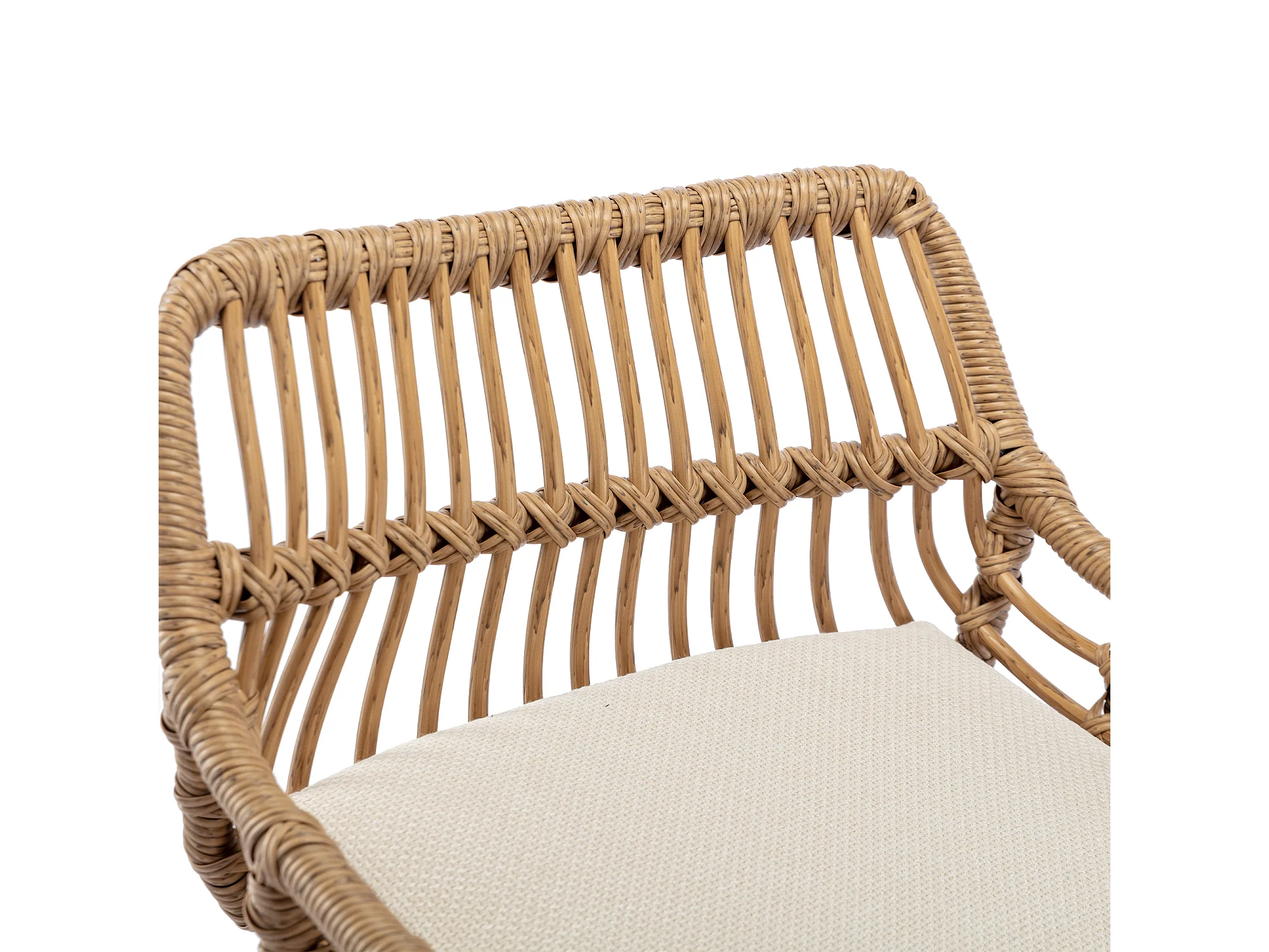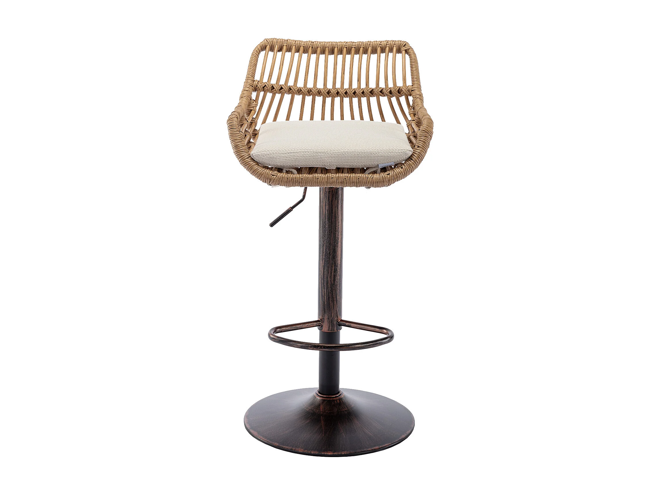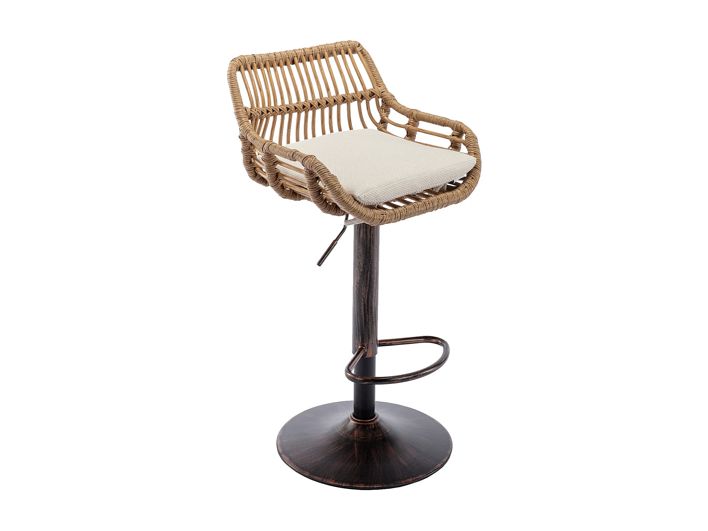 Lot de 2 tabourets réglables - Cadre en métal et dossier en rotin - Coussin beige en lin