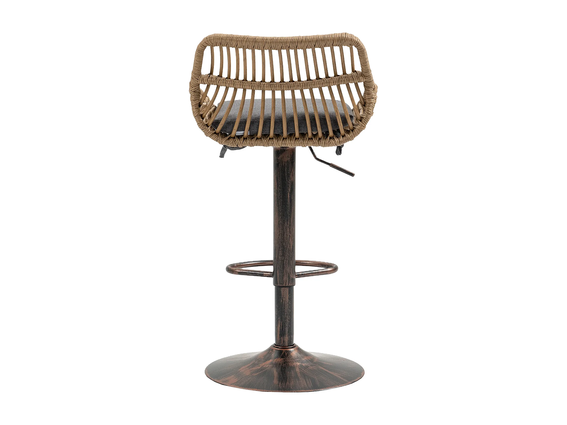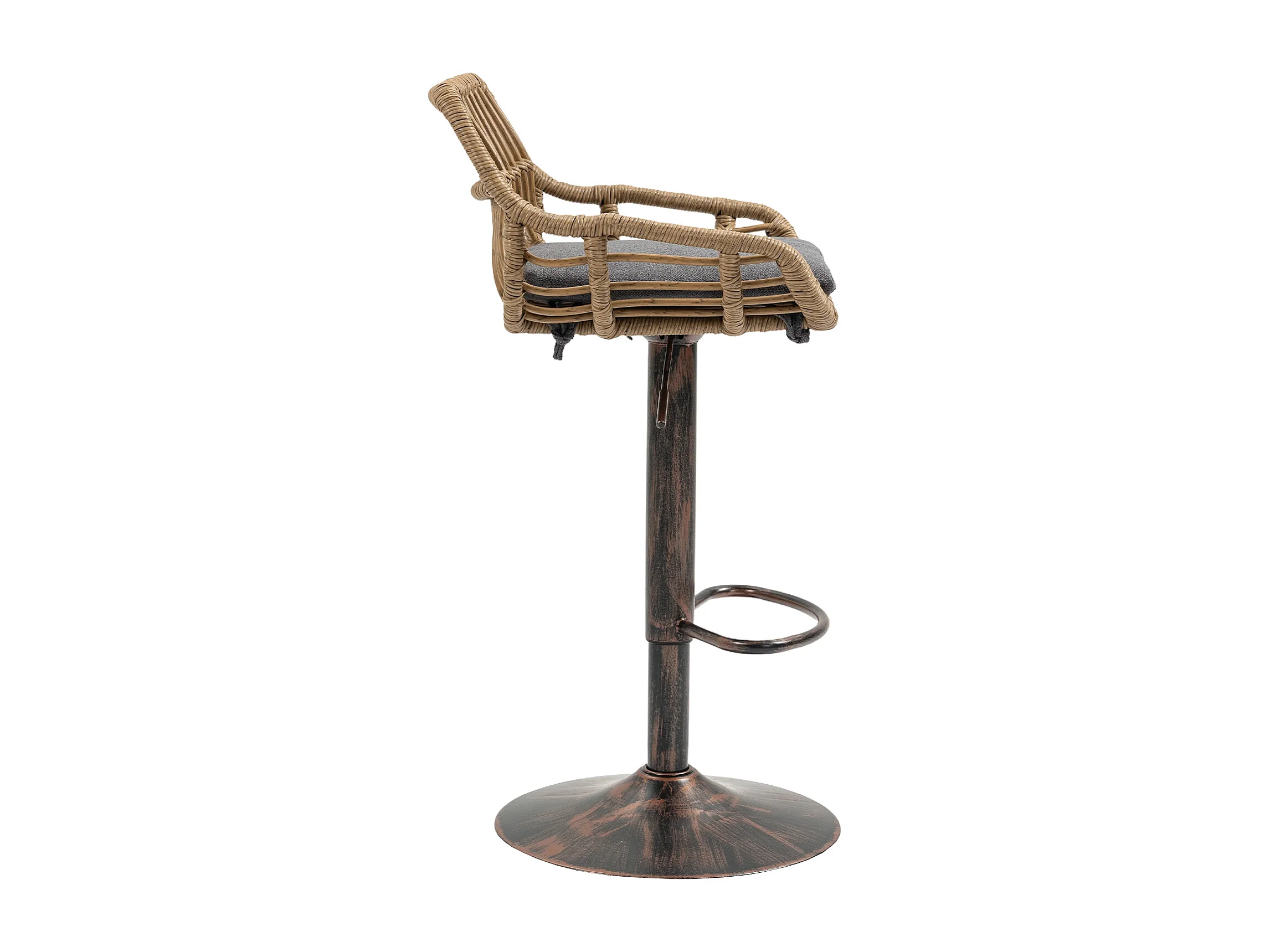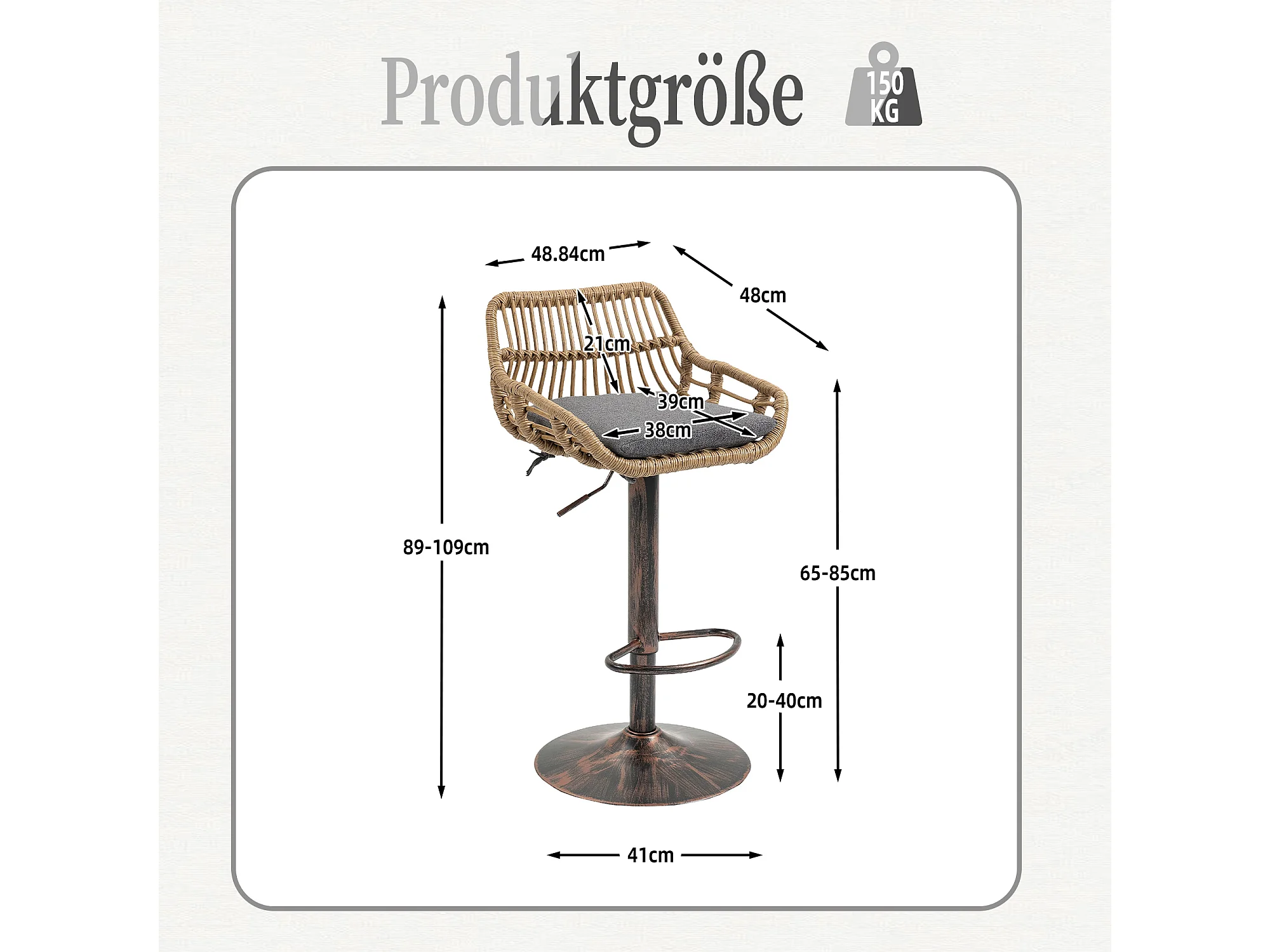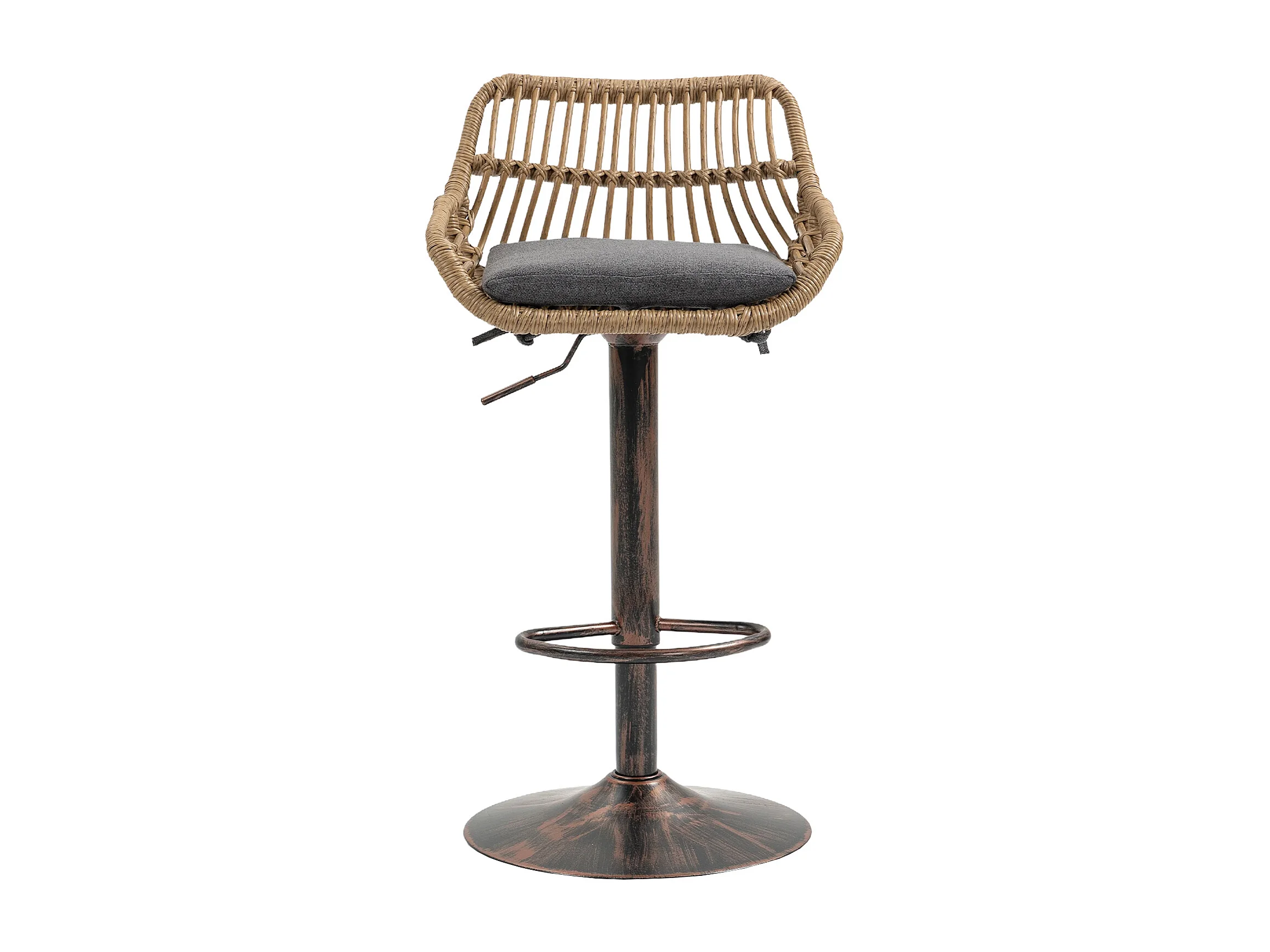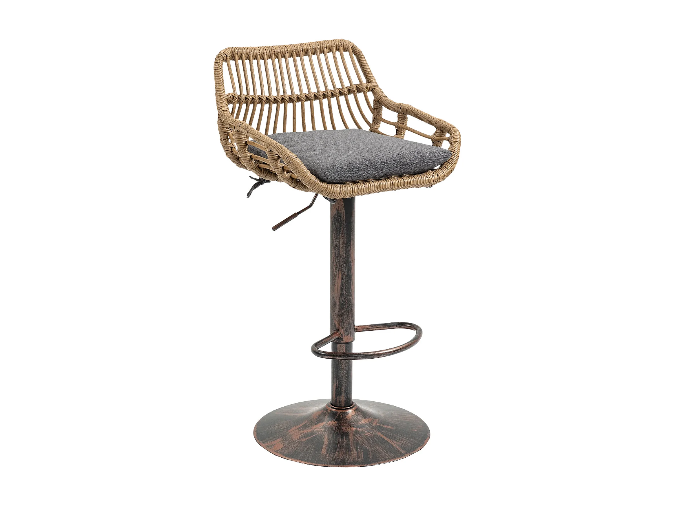 Lot de 2 tabourets réglables - Cadre en métal et dossier en rotin - Coussin gris en lin