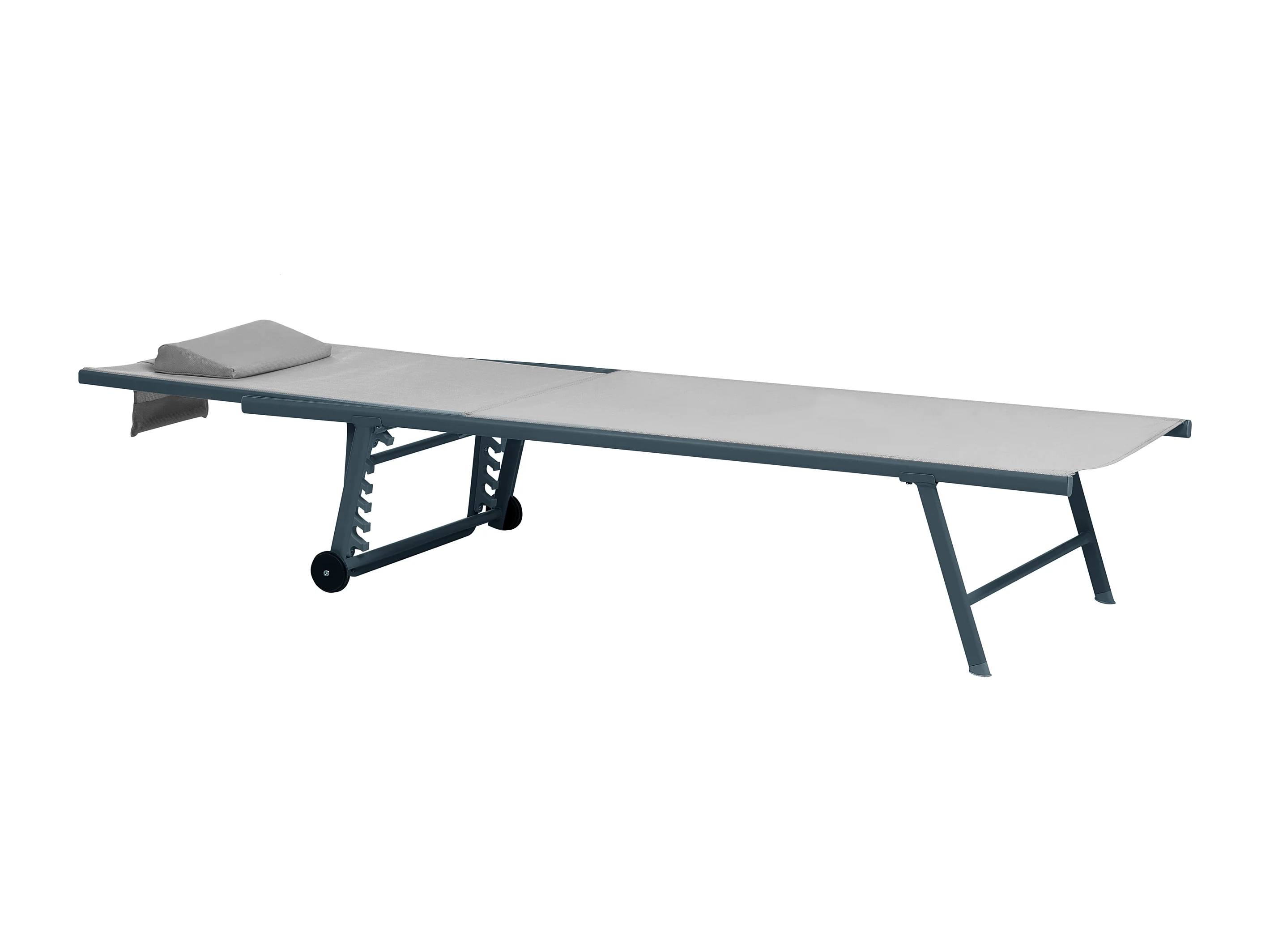 Chaise longue avec oreiller acier et textilène gris