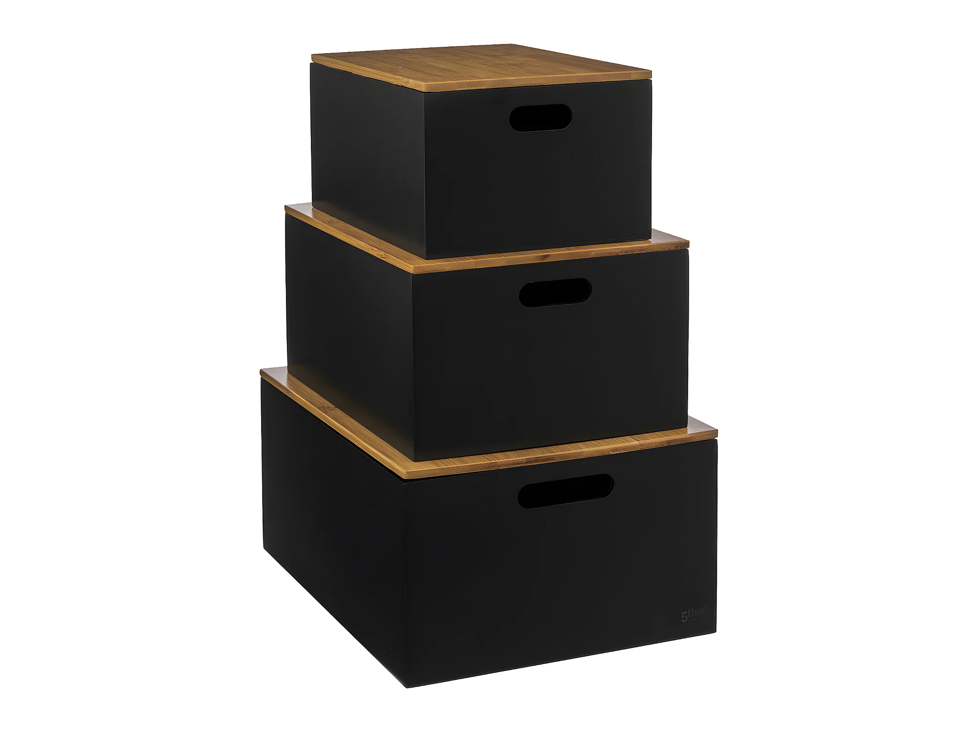 Lot de 3 Boites de rangement en Bois avec couvercle Bambou