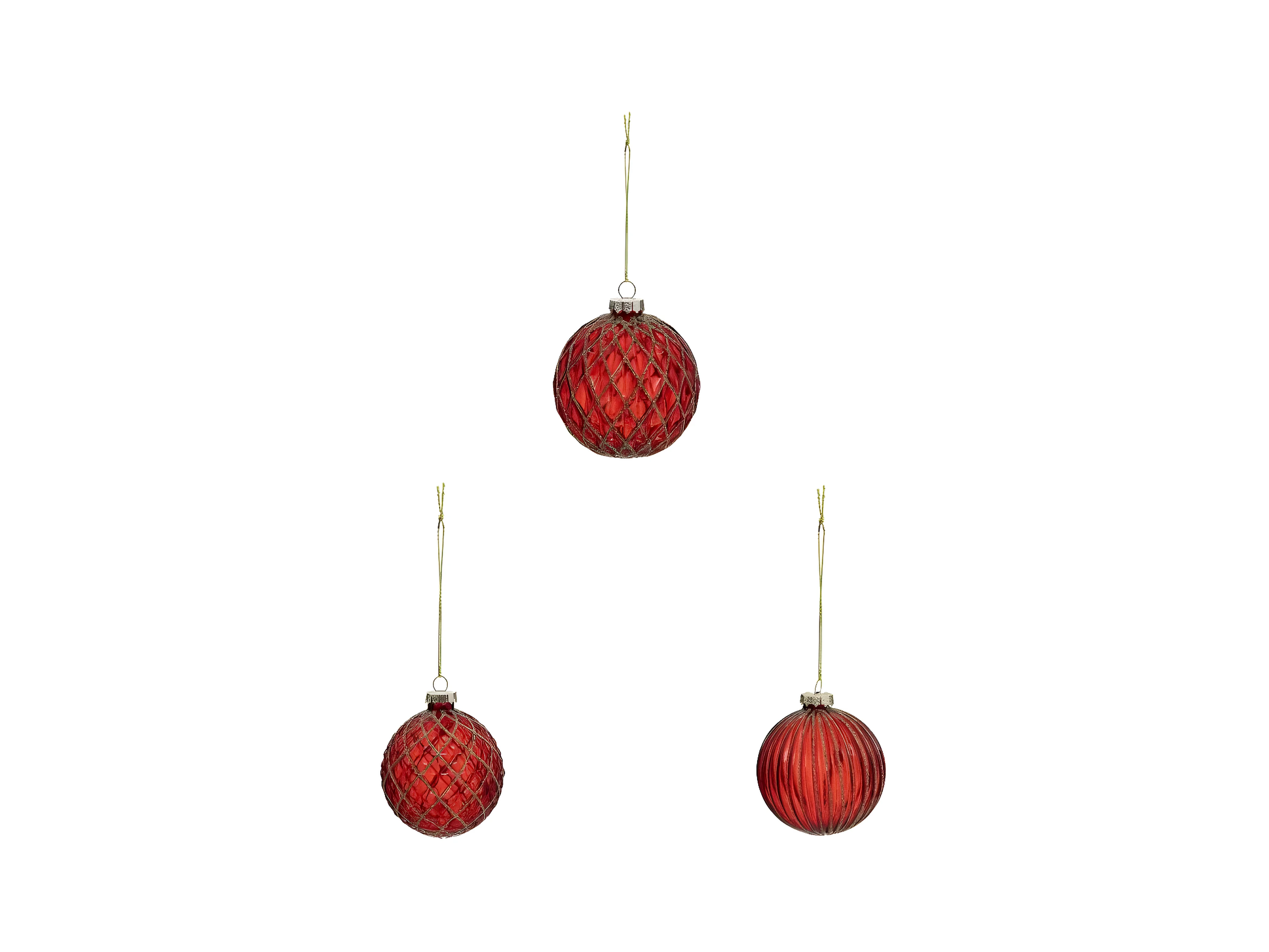 Lot de 3 Boules de Noël Déco "Soir" 8cm Rouge