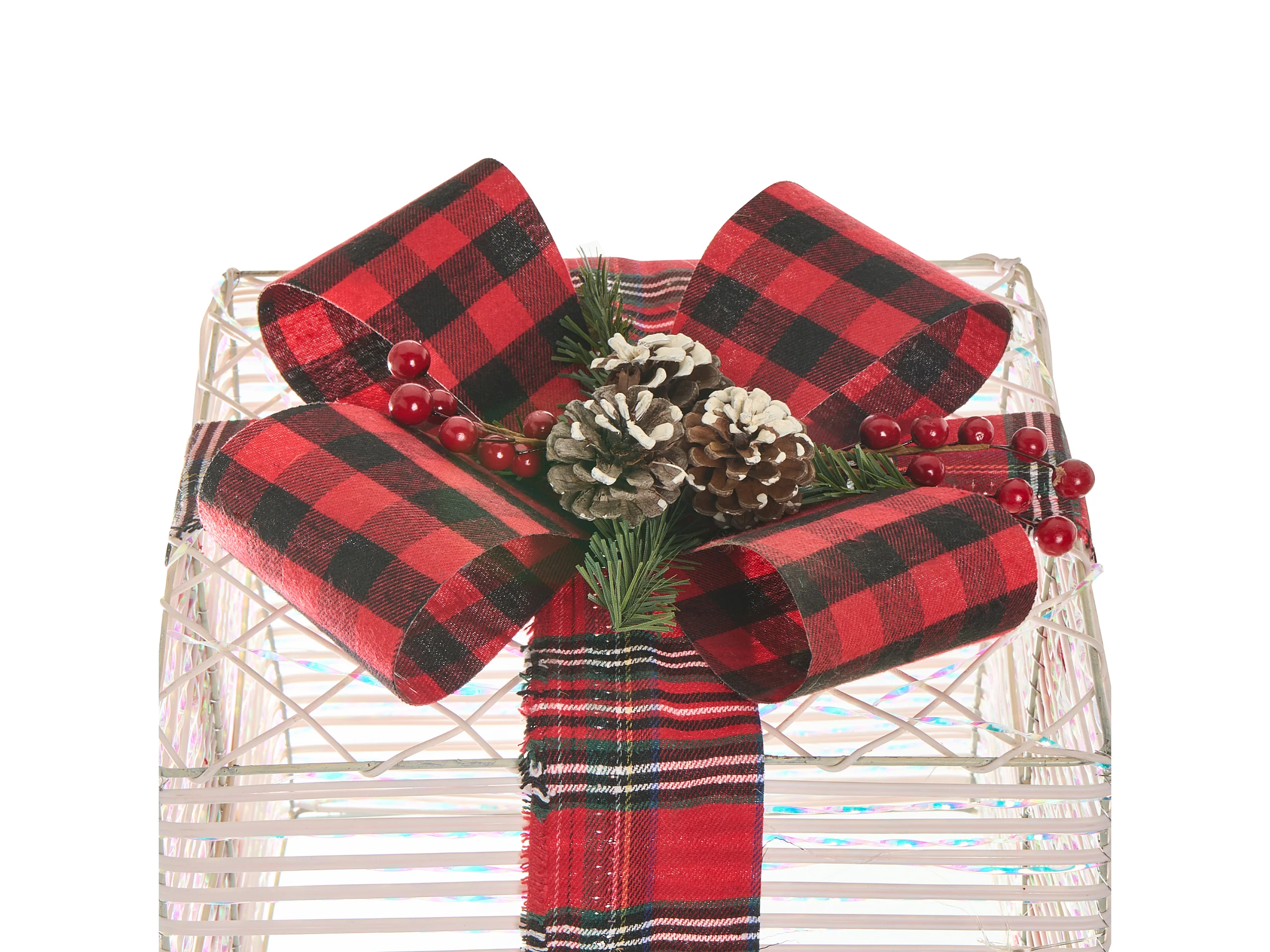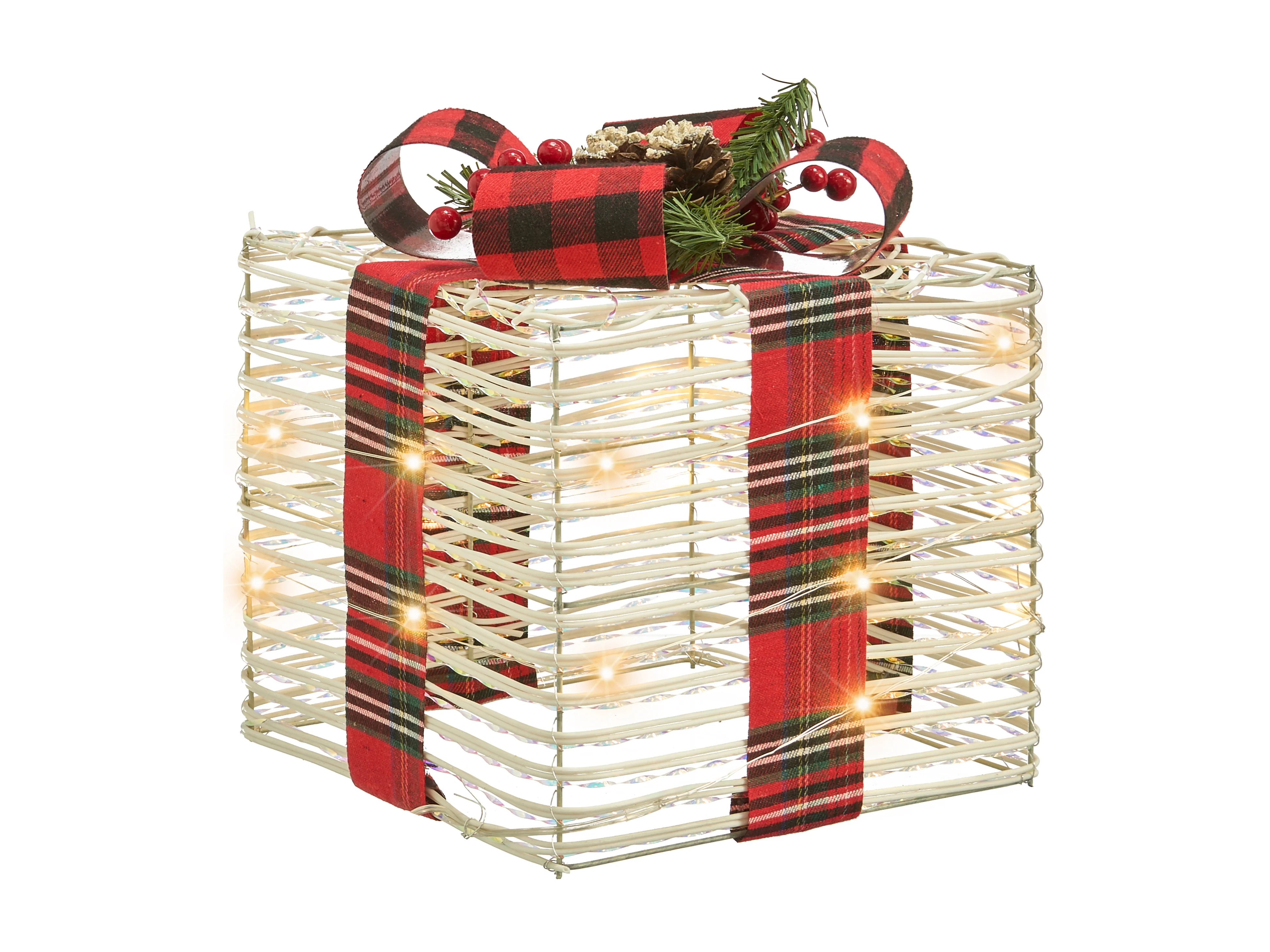 Lot de 3 décorations de Noël LED MANGEN Cadeaux de Noël 20/25/35 cm Blanc cassé