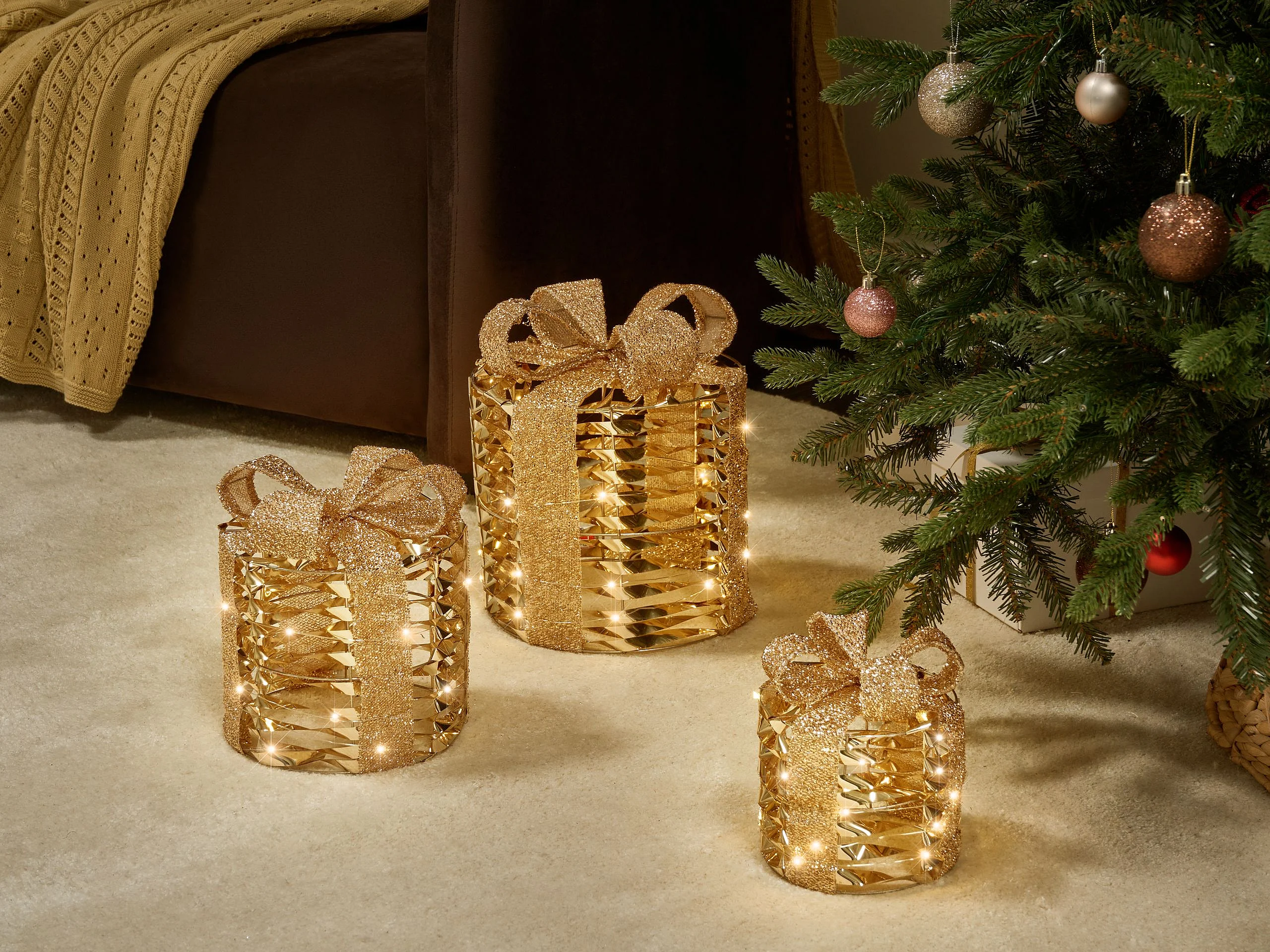 Lot de 3 décorations de Noël LED TOFTE Cadeaux de Noël 20/25/30 cm Doré