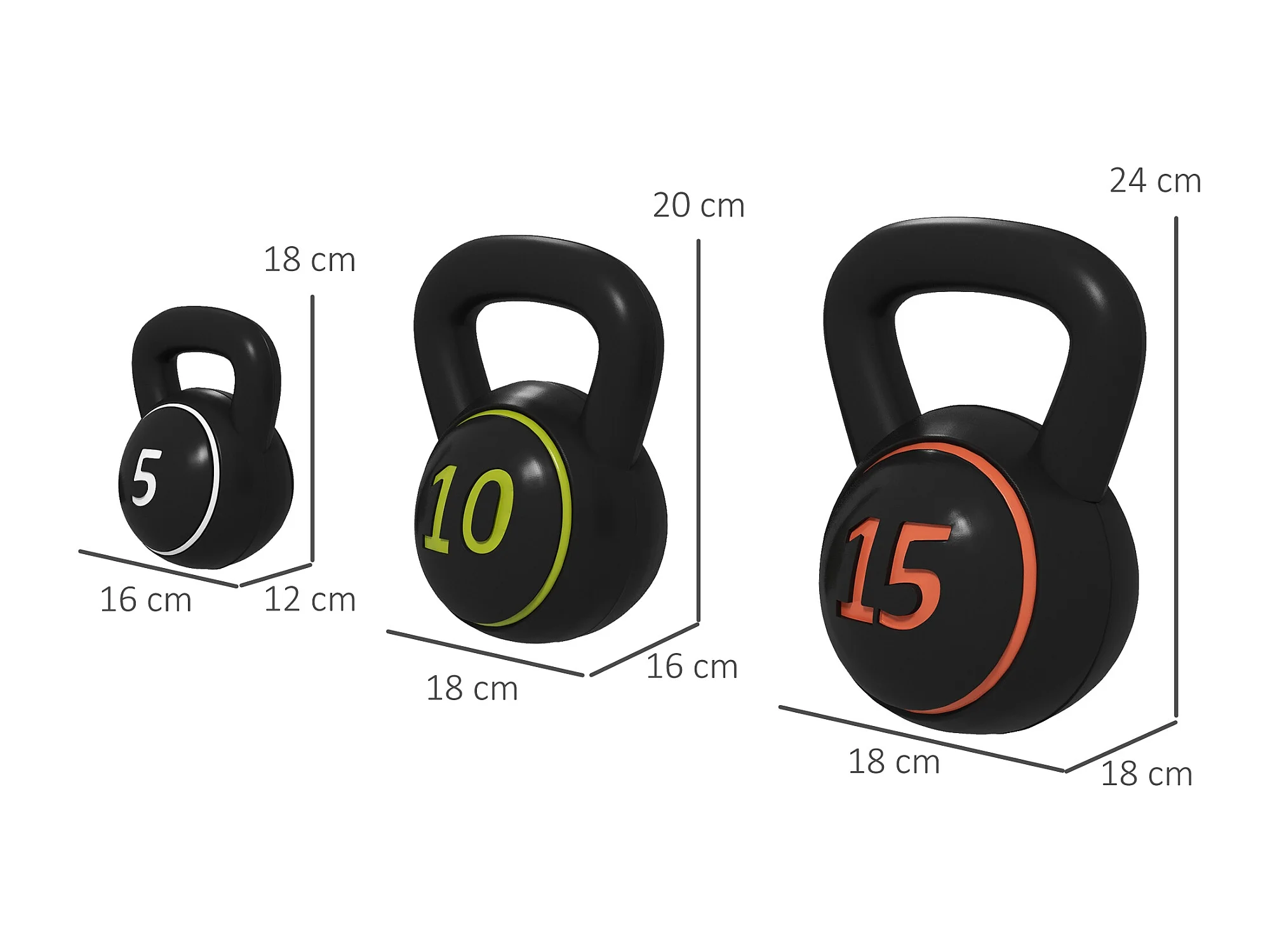 Lot de 3 kettlebells 2,2/4,5/6,8 Kg - prise ergonomique - entraînement musculaire & haltérophilie - PVC noir