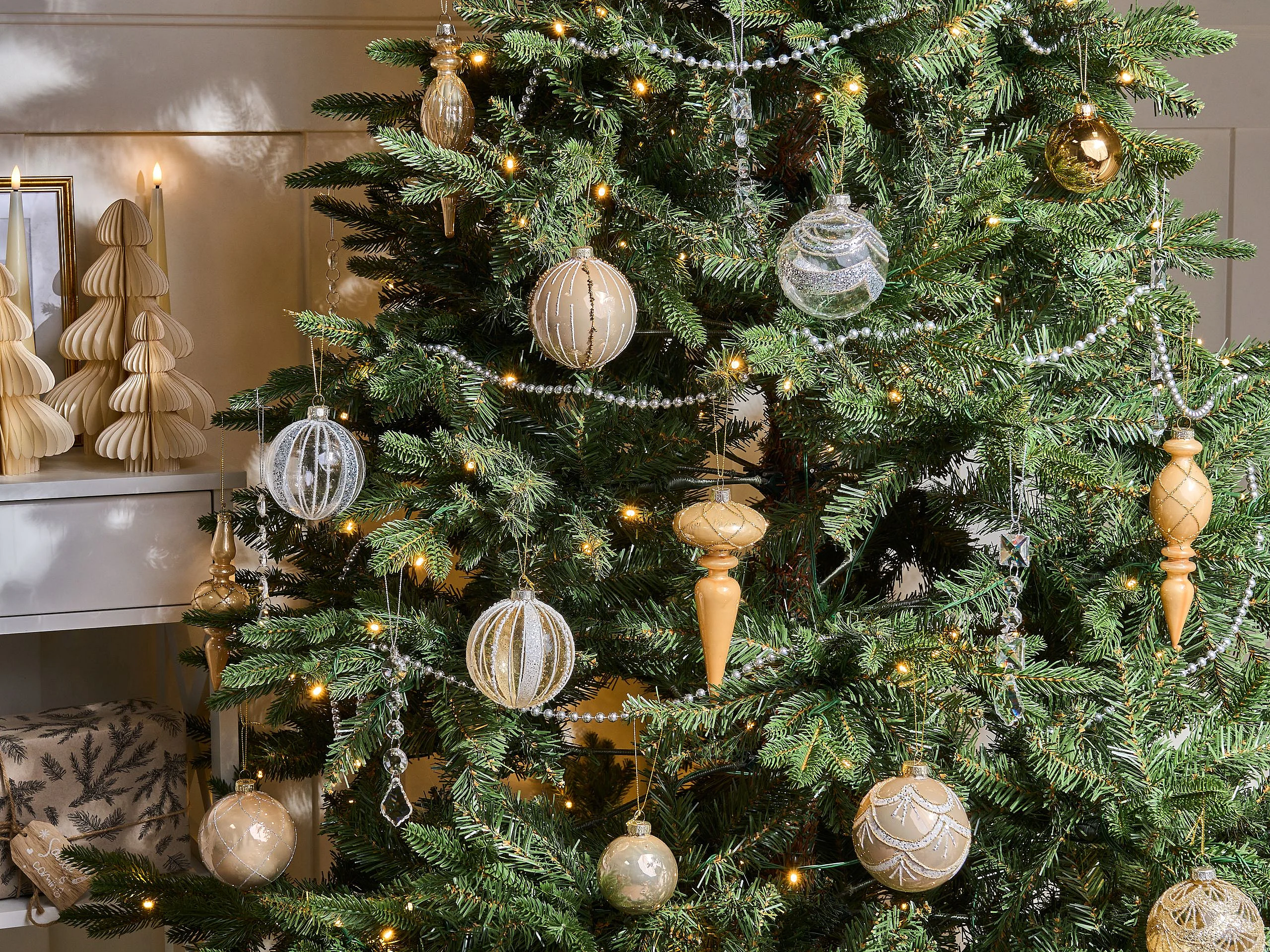Déco de sapin de Noël Kit de 18 pièces Boules et Cimier - Or