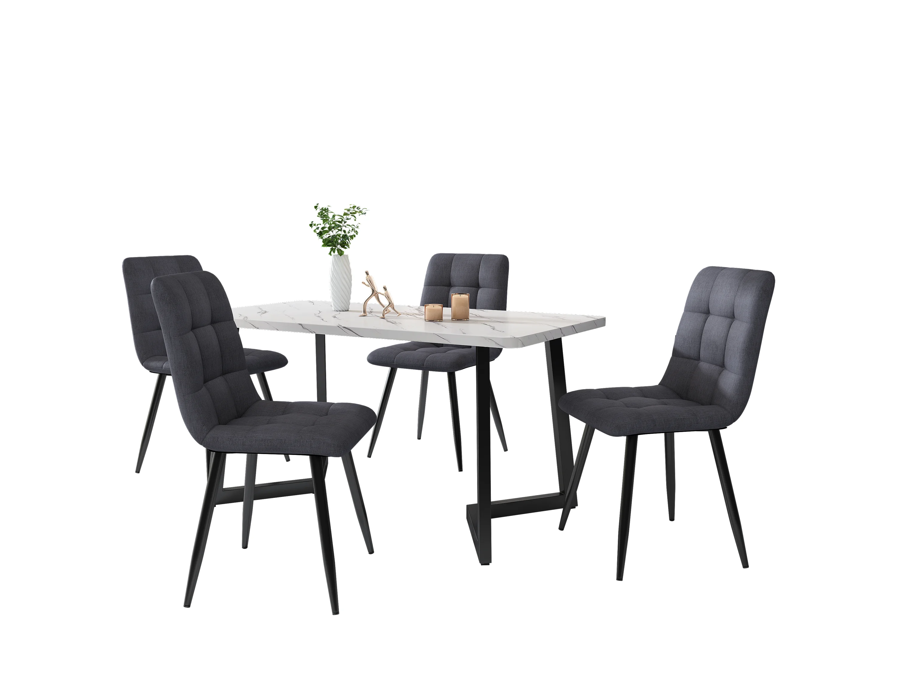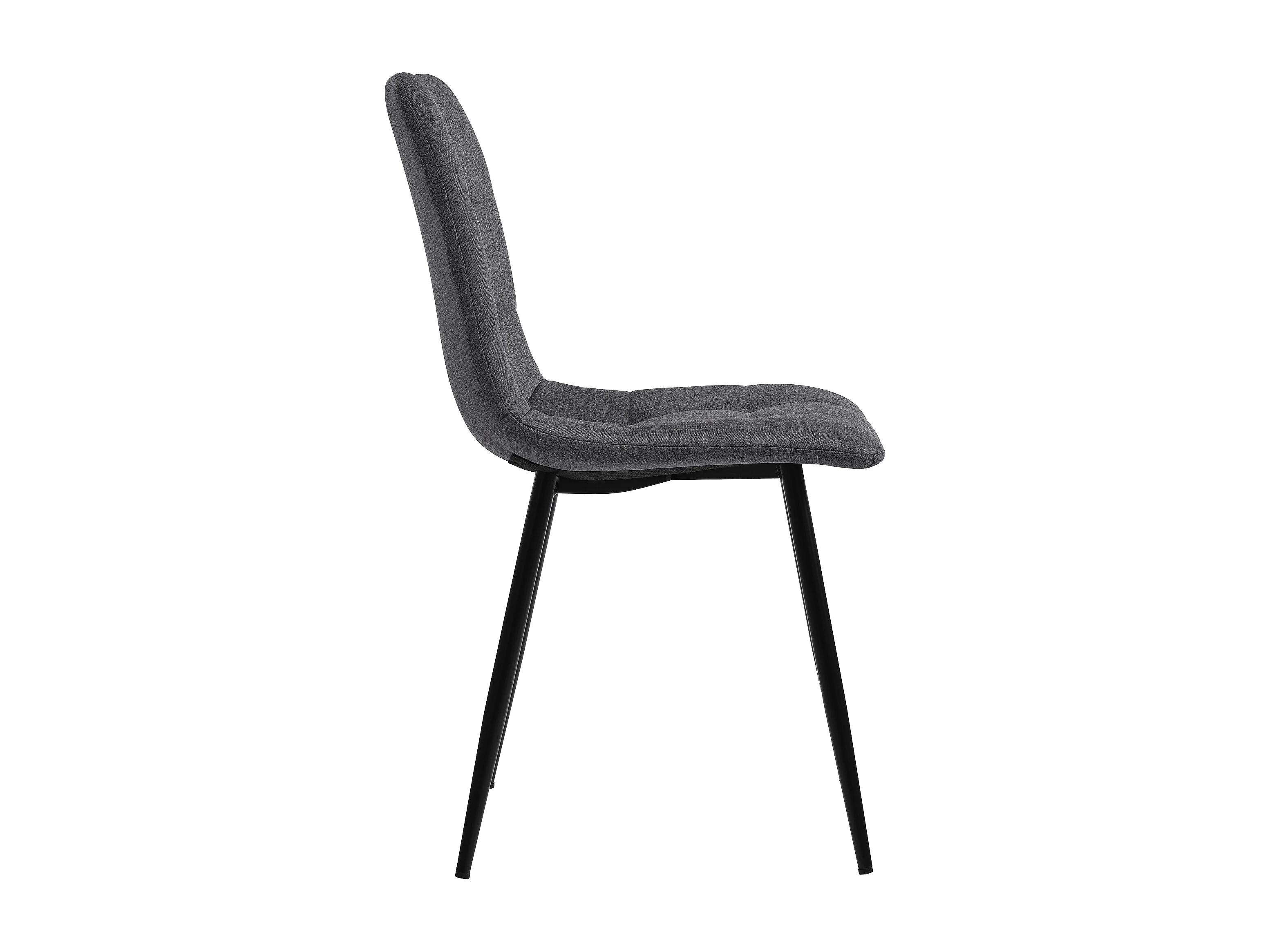Lot de 4 chaises de salle à manger rembourrées, dossier à surpiqûres décoratives, en lin gris avec pieds en métal