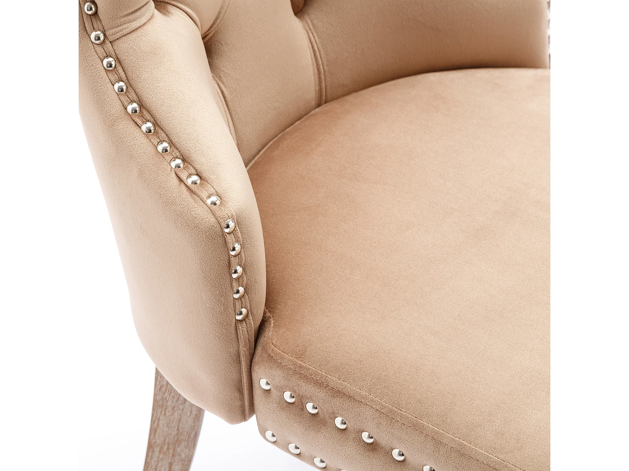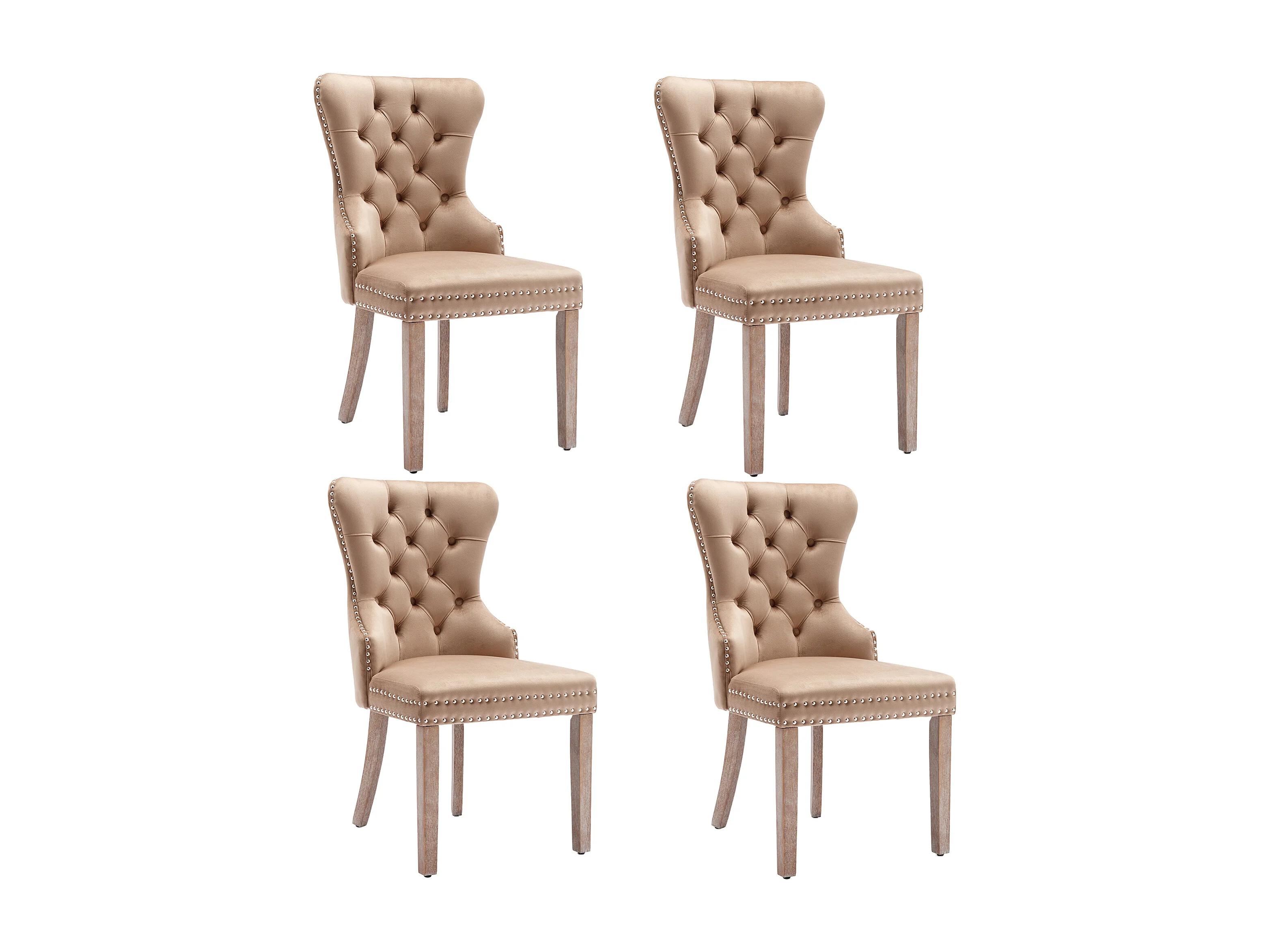 Lot de 4 chaises à manger en velours avec dossier - pieds en bois - marron clair