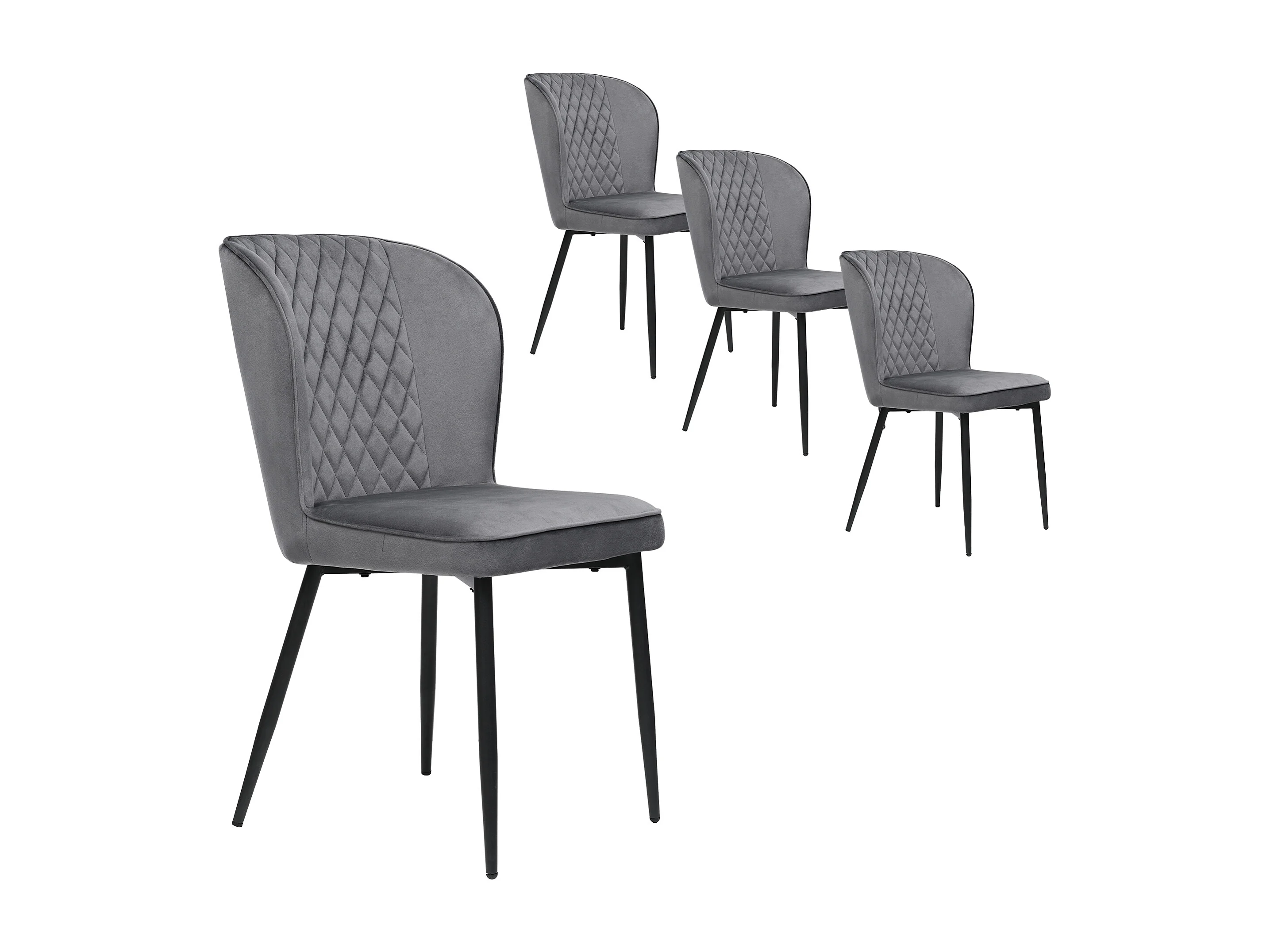Lot de 4 chaises à manger en velours avec dossier rembourré - pieds en métal noir - gris