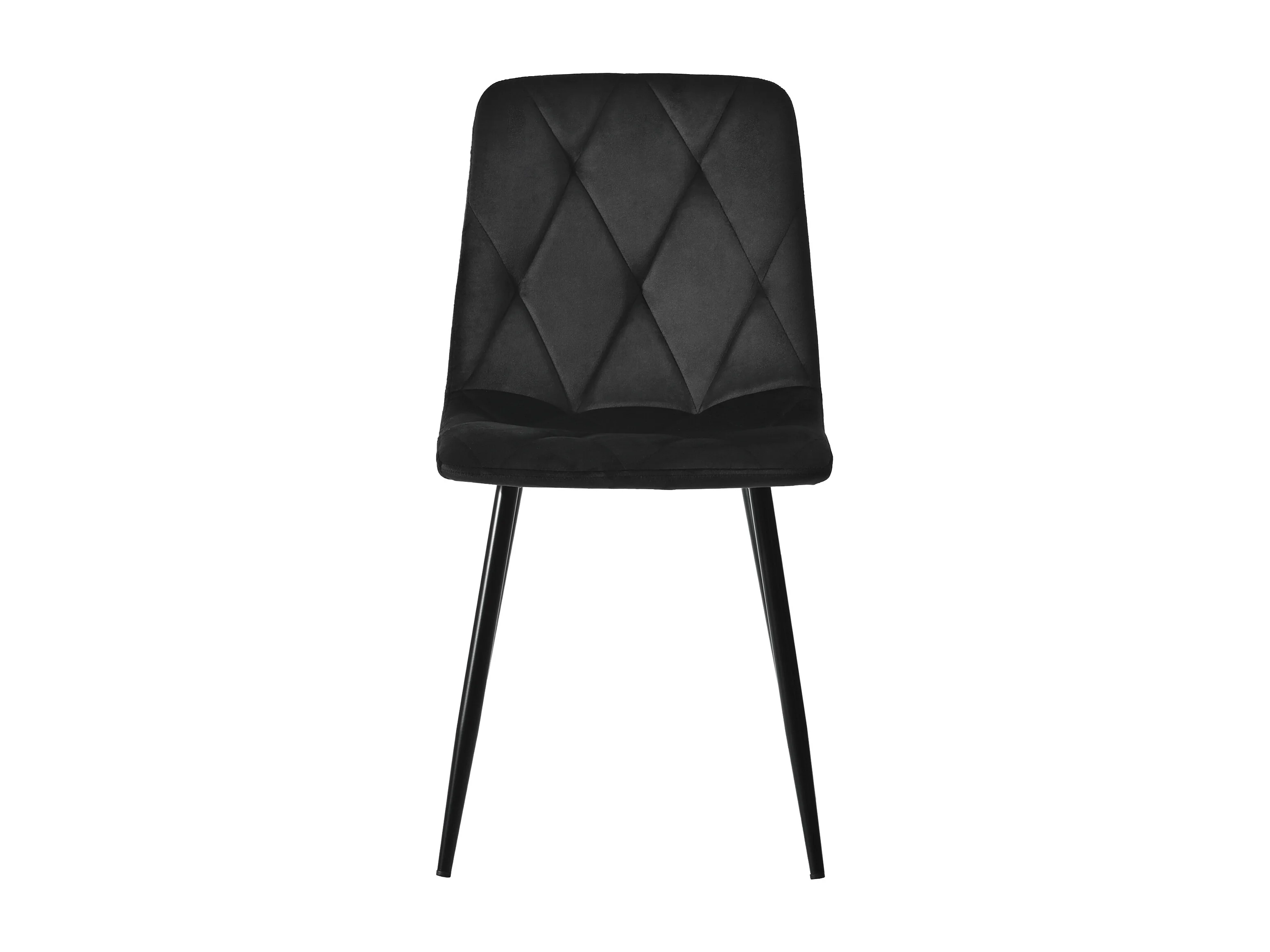 Lot de 4 chaises de salle à manger, dossier avec motif chevrons, pieds en métal, velours noir