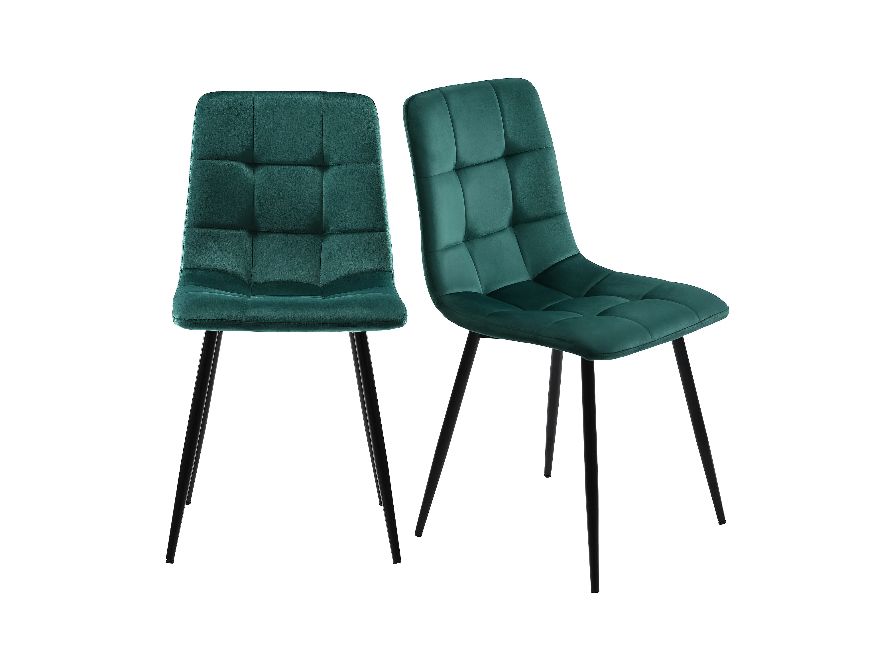 Lot de 4 chaises à manger en velours avec dossier rembourré - pieds en métal noir - vert foncé