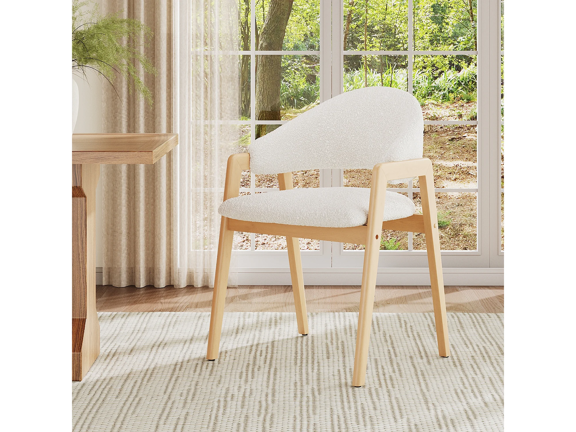 Lot de 4 chaises de salle à manger - 57.5 x 54.5 x 82.5 cm - Housse en fausse fourrure - bois - blanc