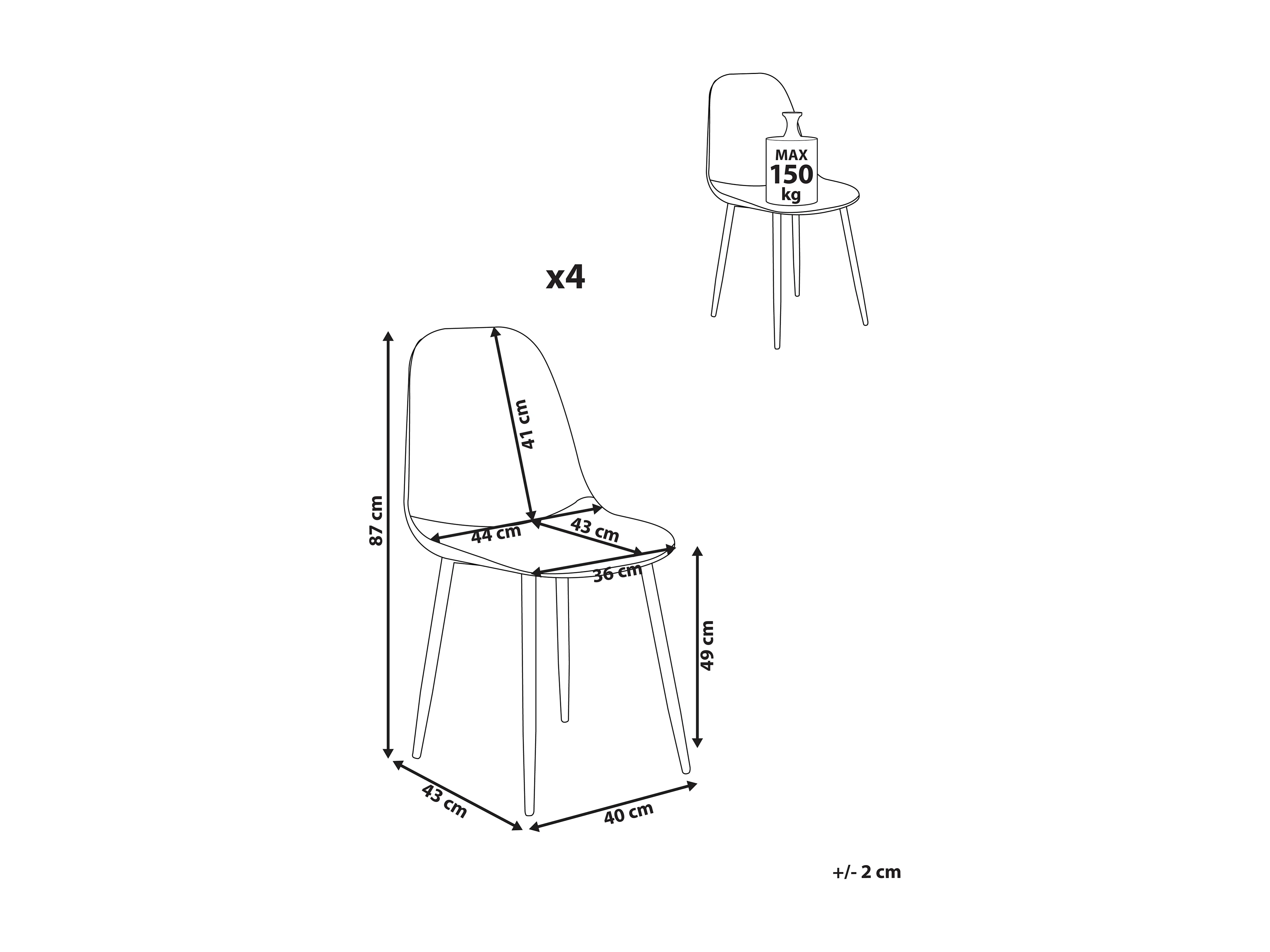 Lot de 4 chaises de salle à manger CRANDALL Tissu Beige