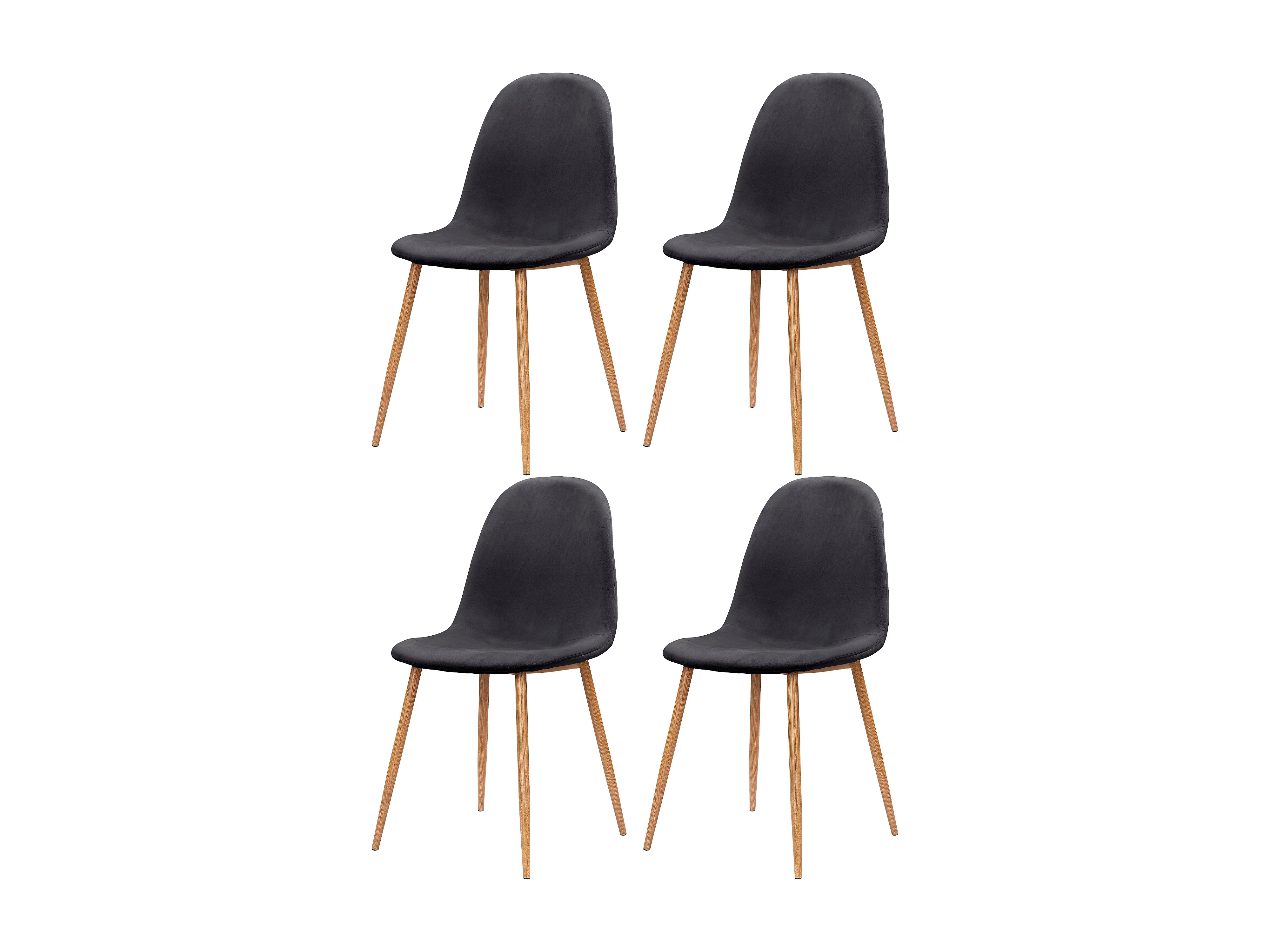 Monza | Lot de 4 chaises de salle à manger en velours et pieds chêne