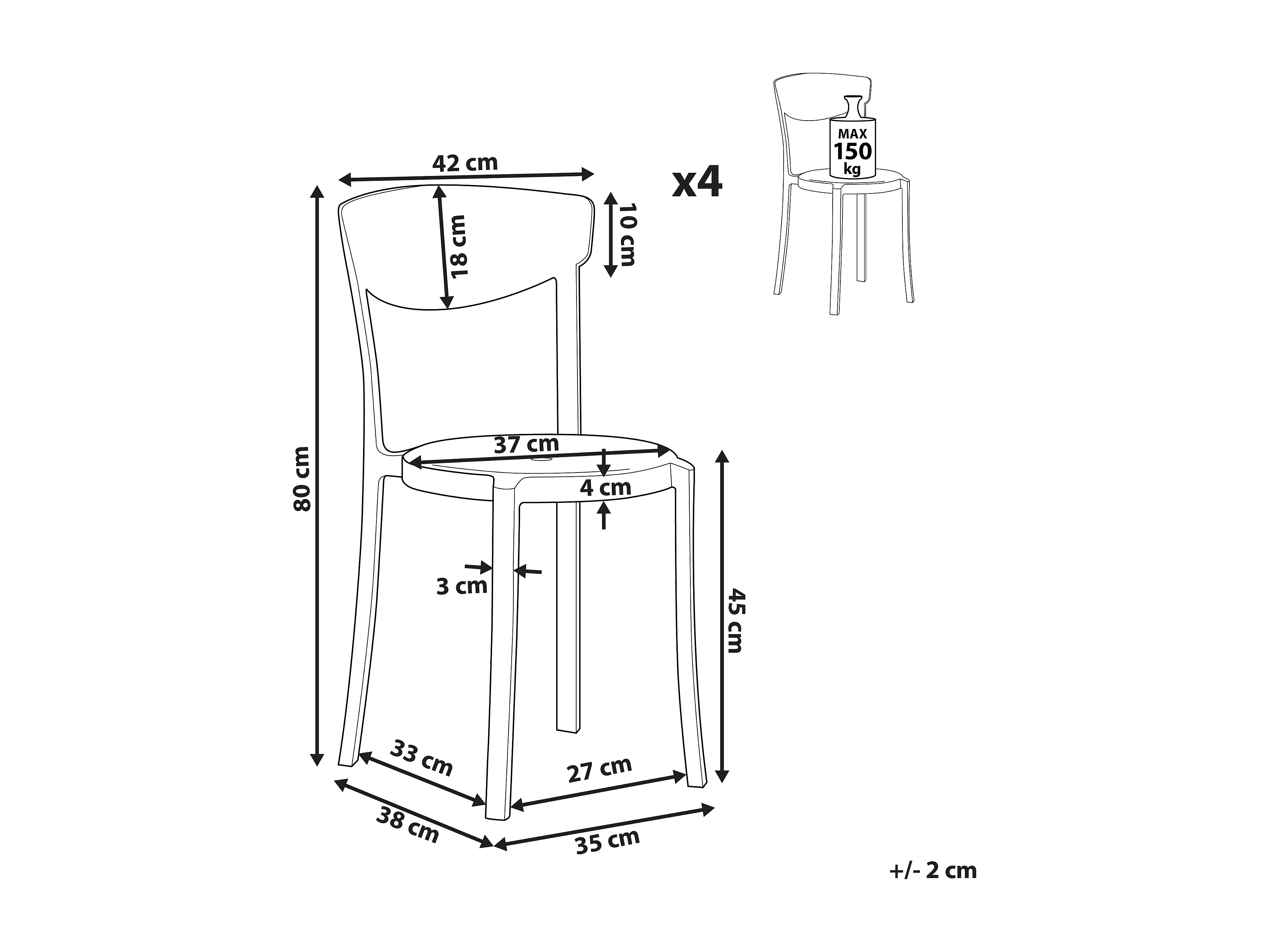 Lot de 4 chaises de jardin VIESTE Gris clair