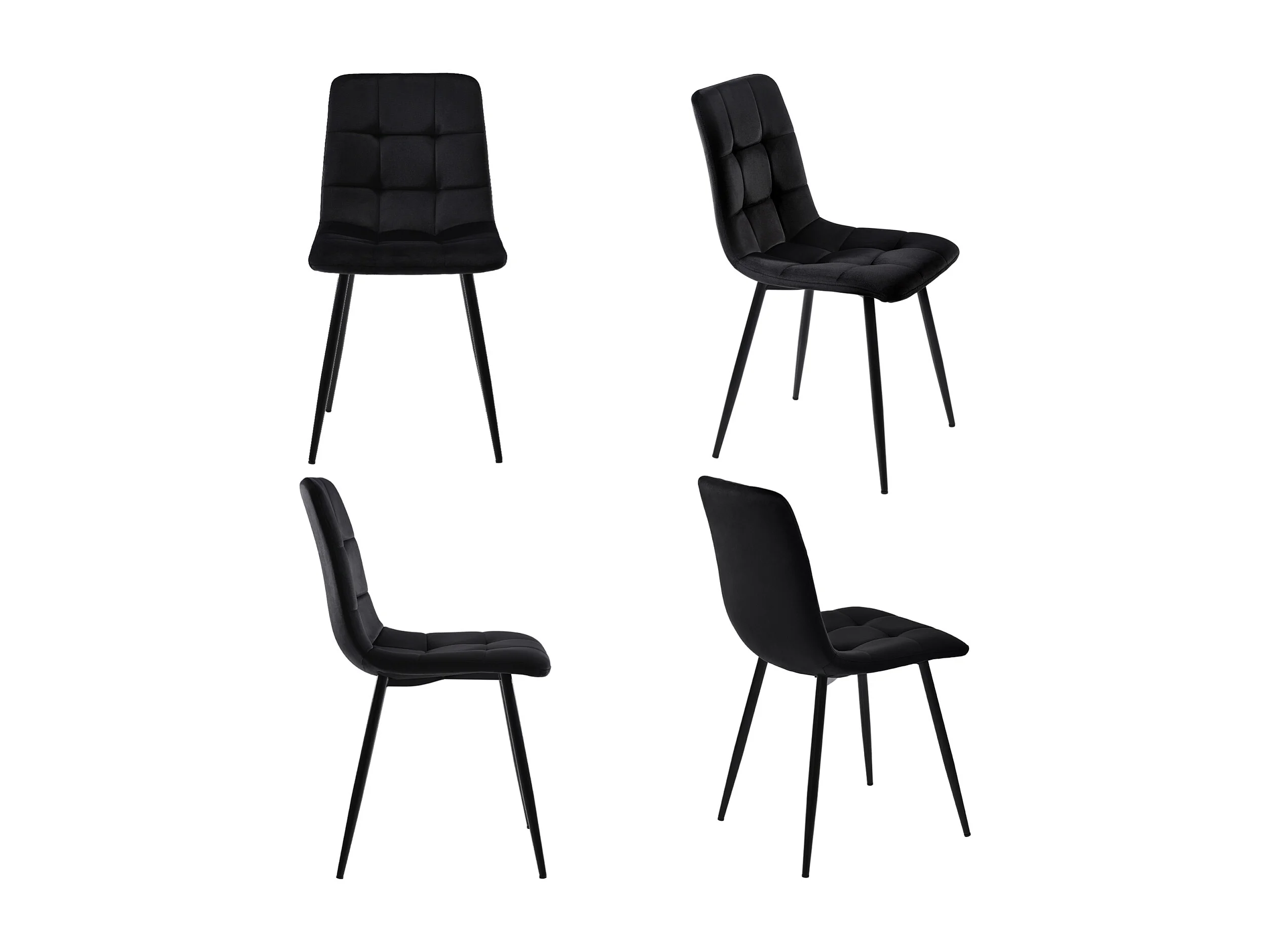 Lot de 4 chaises de salle à manger modernes rembourrées avec dossier - velours - noir - Pour cuisine,salon