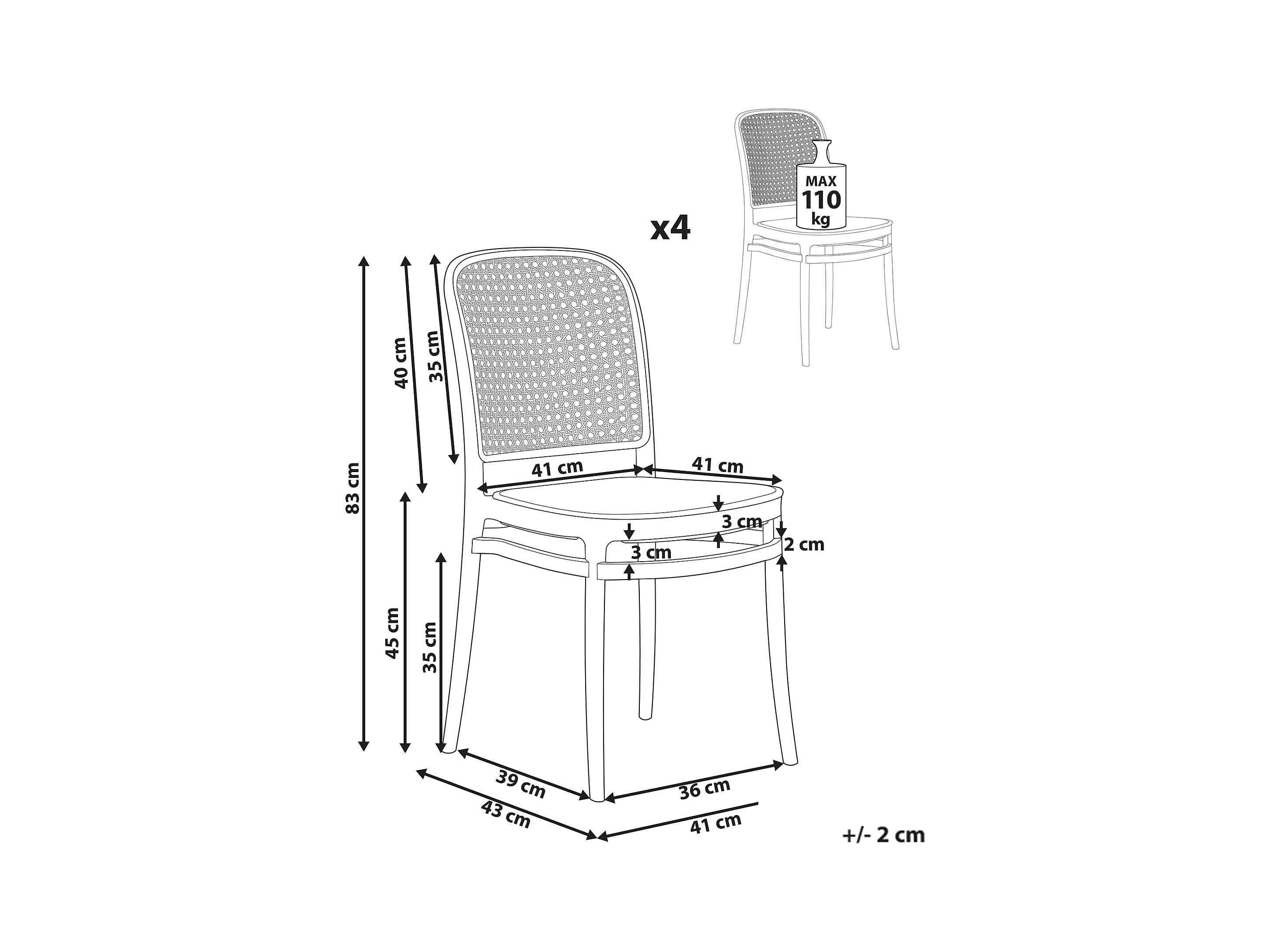 Lot de 4 chaises de jardin PLOSE Beige