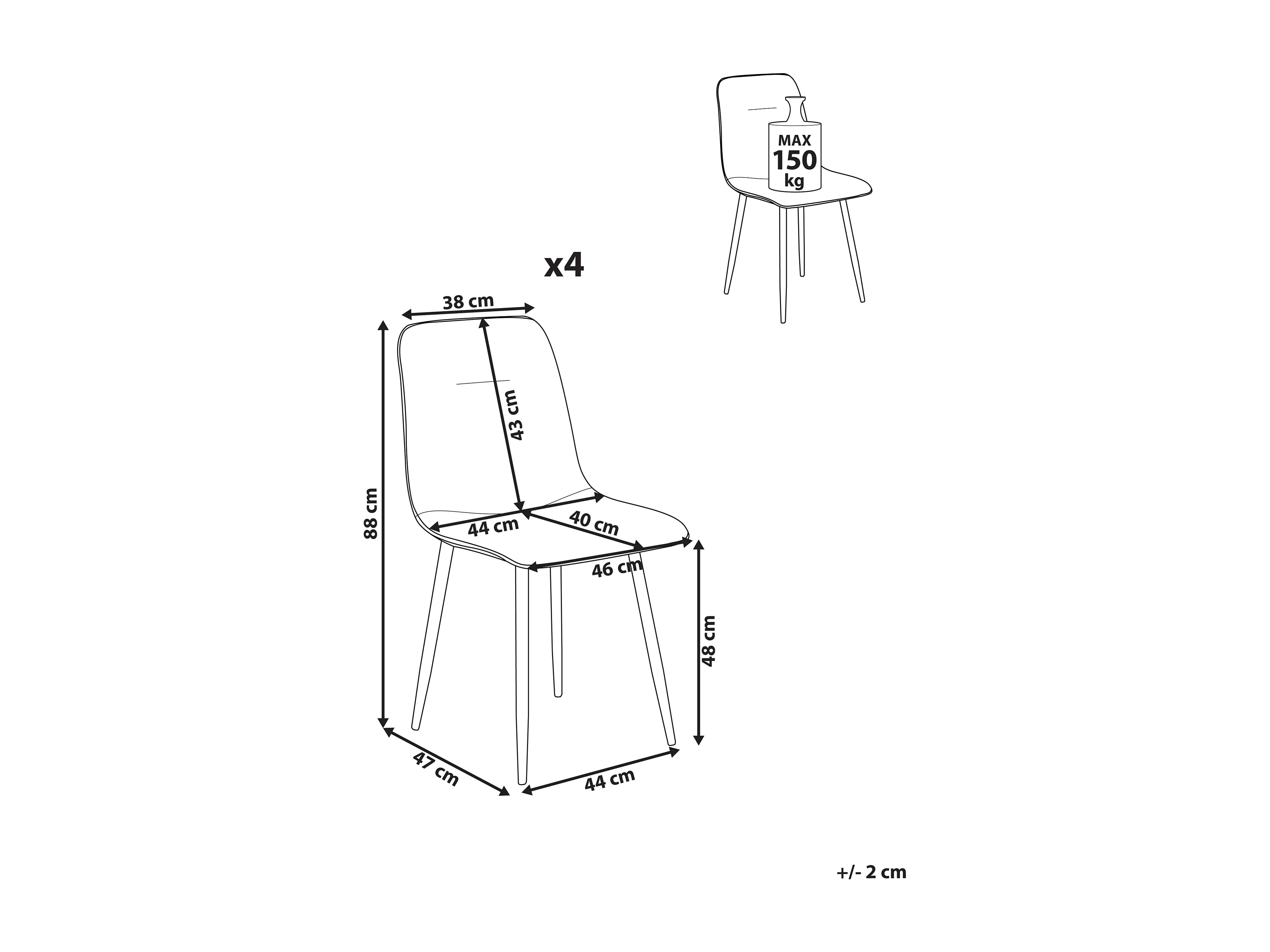 Lot de 4 chaises de salle à manger TUSCOLA Tissu Beige clair