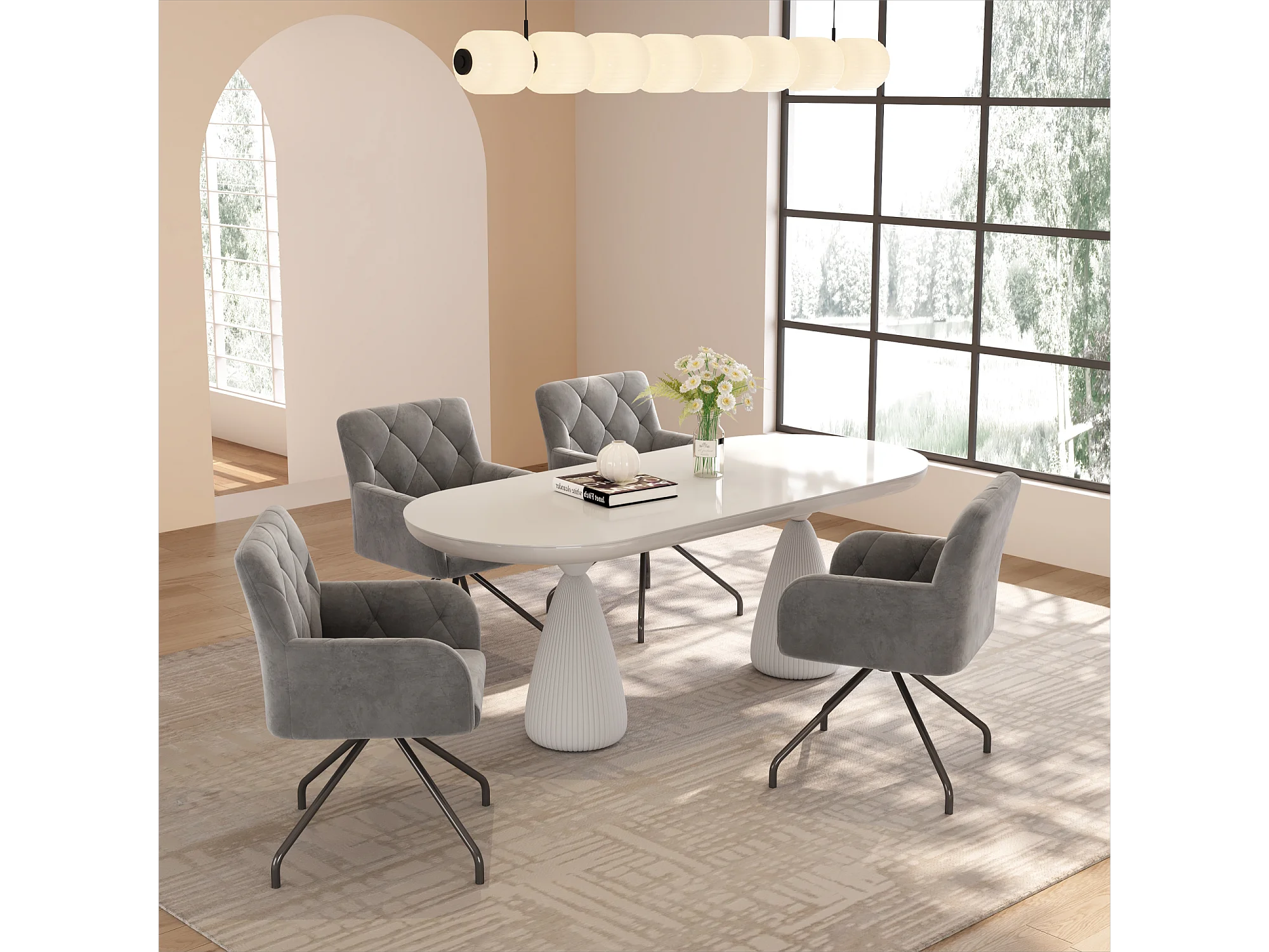 Lot de 4 chaises de salle à manger - velours gris clair - dossier incurvé et pieds en métal - pour salon et chambre