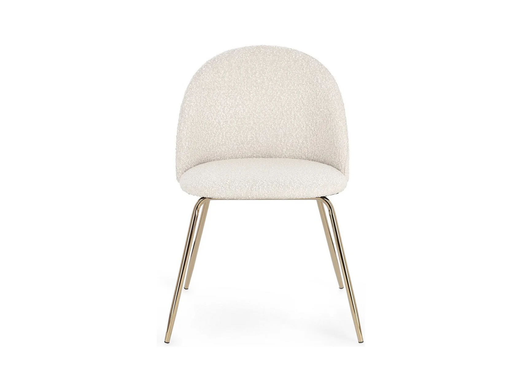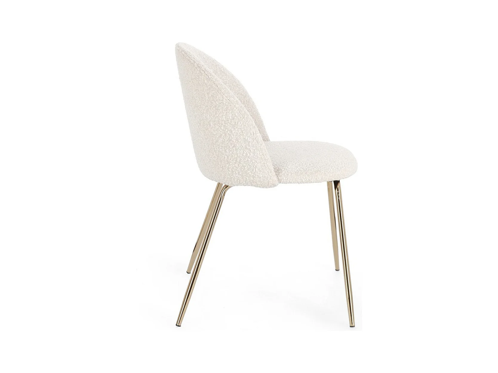 Lot de 4 chaises en tissu doux bouclé beige clair et pieds dorés Tanya – Élégance et Confort