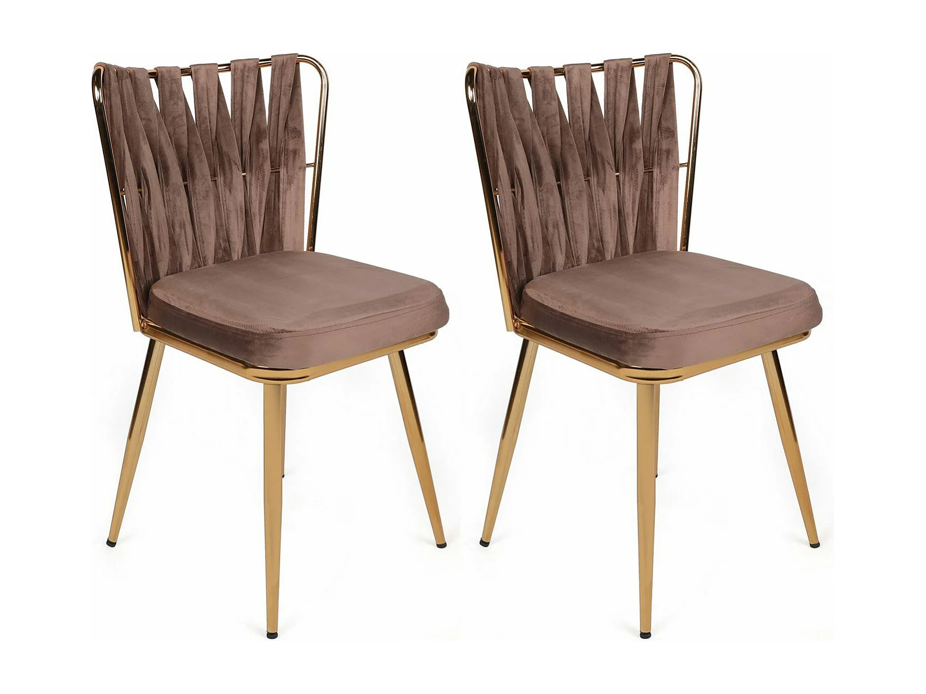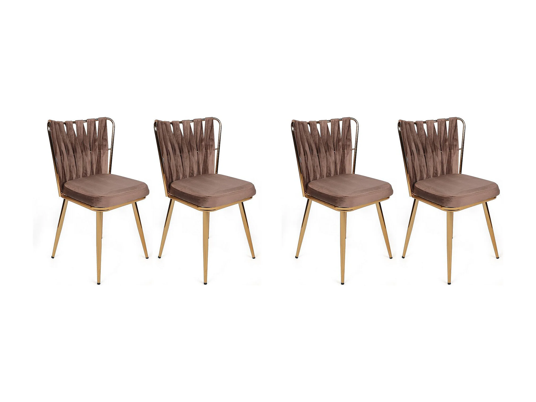 Lot de 4 chaises Scribe Métal Or et Velours Marron clair