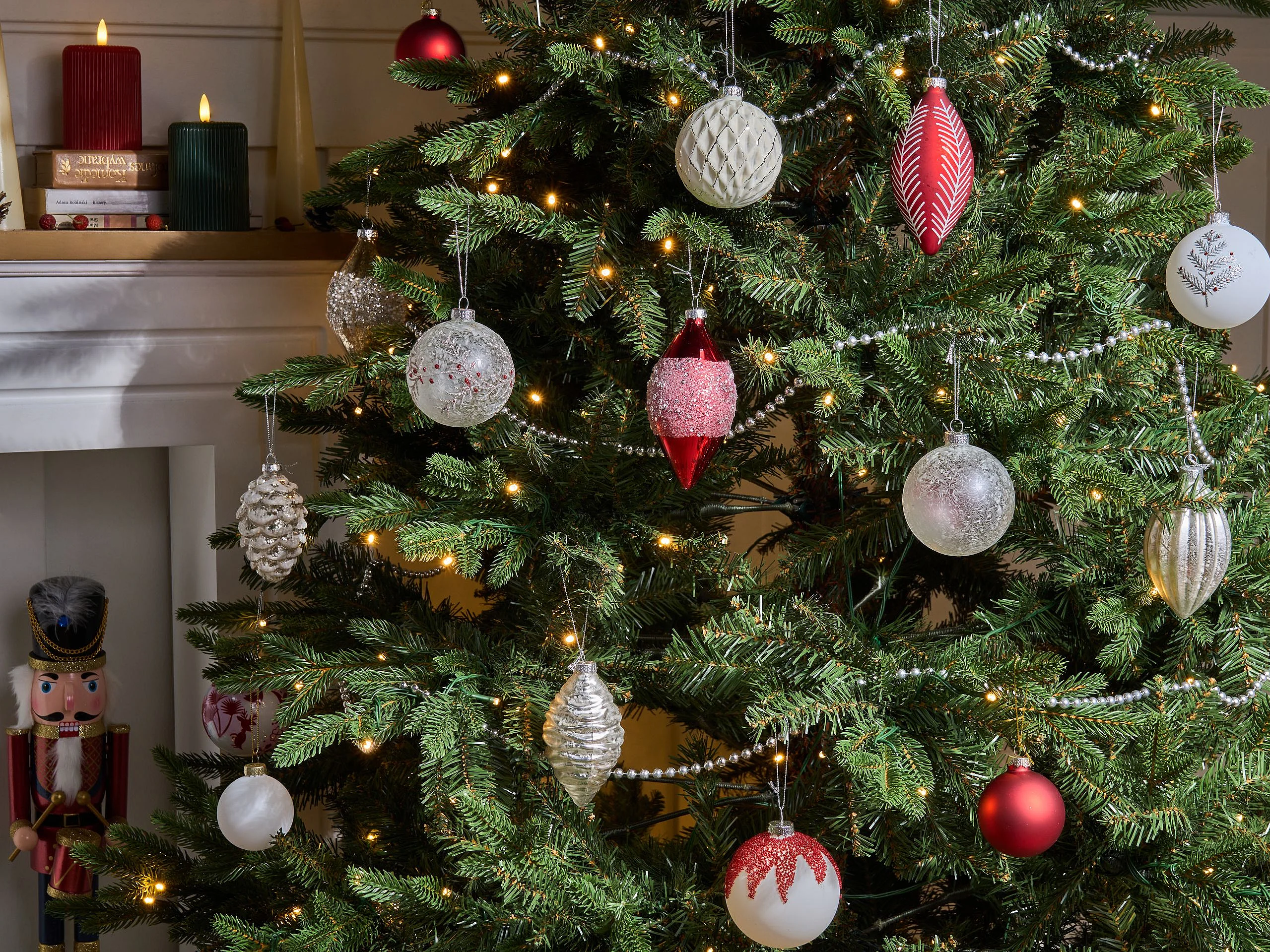 Lot de 50 boules SNOWFLAKE Verre Rouge/blanc