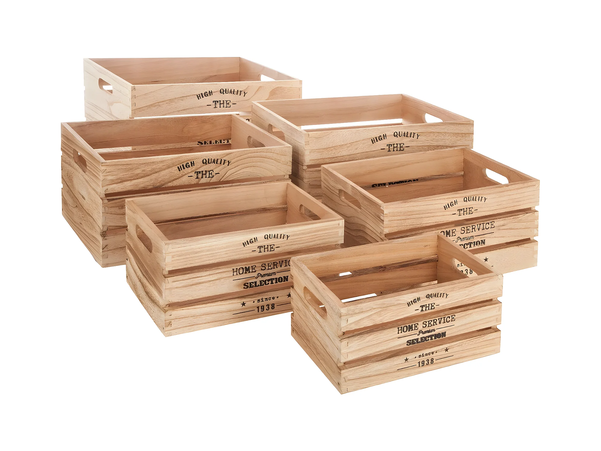 Lot de 6 Cagettes de Rangement "White Factory" 40cm Naturel