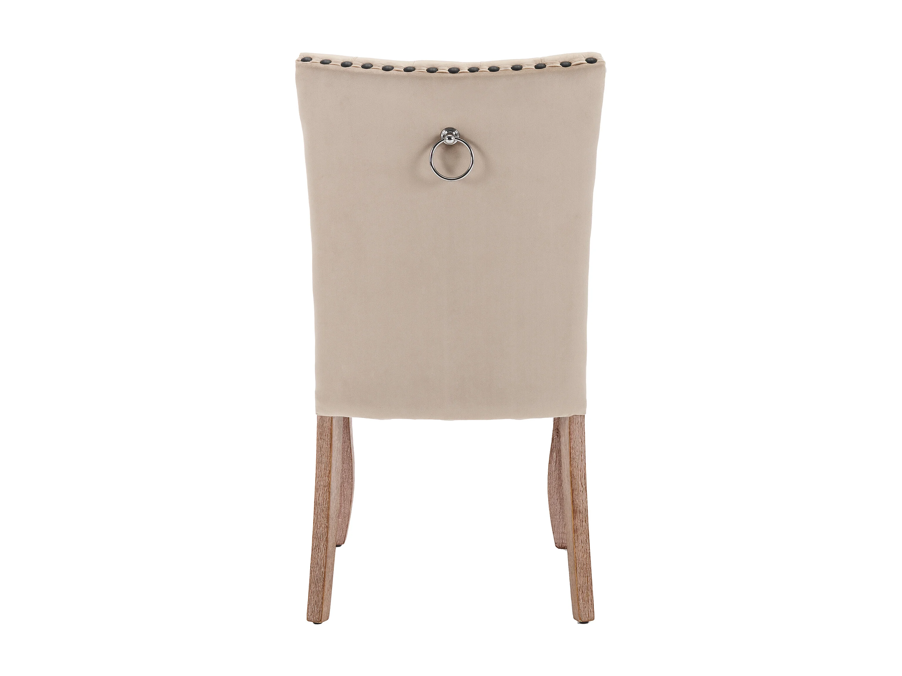 Chaise de salle à manger moderne, dossier avec anneau et clous décoratifs, velours, camel clair