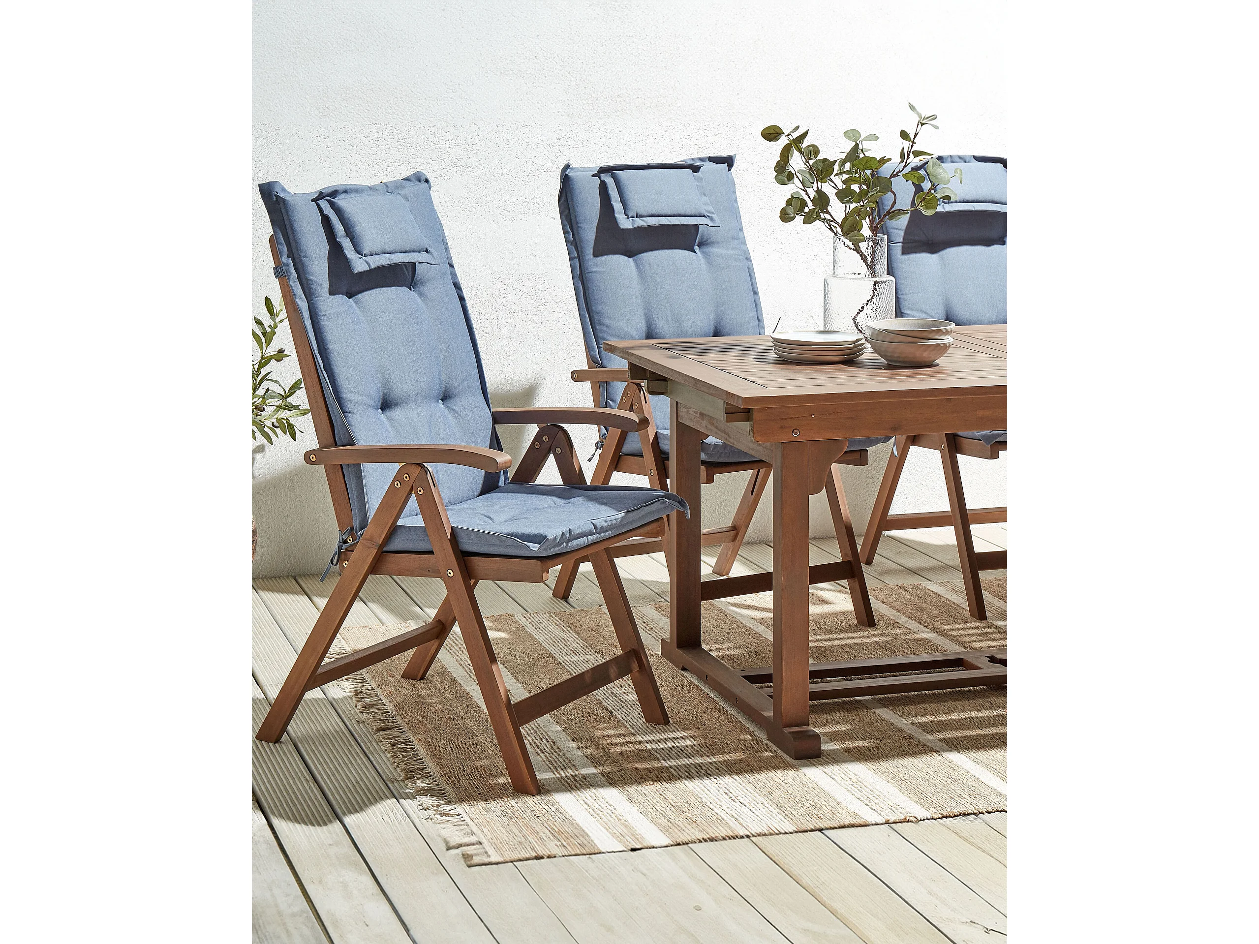Lot de 6 chaises de jardin avec coussins AMANTEA Acacia Bleu