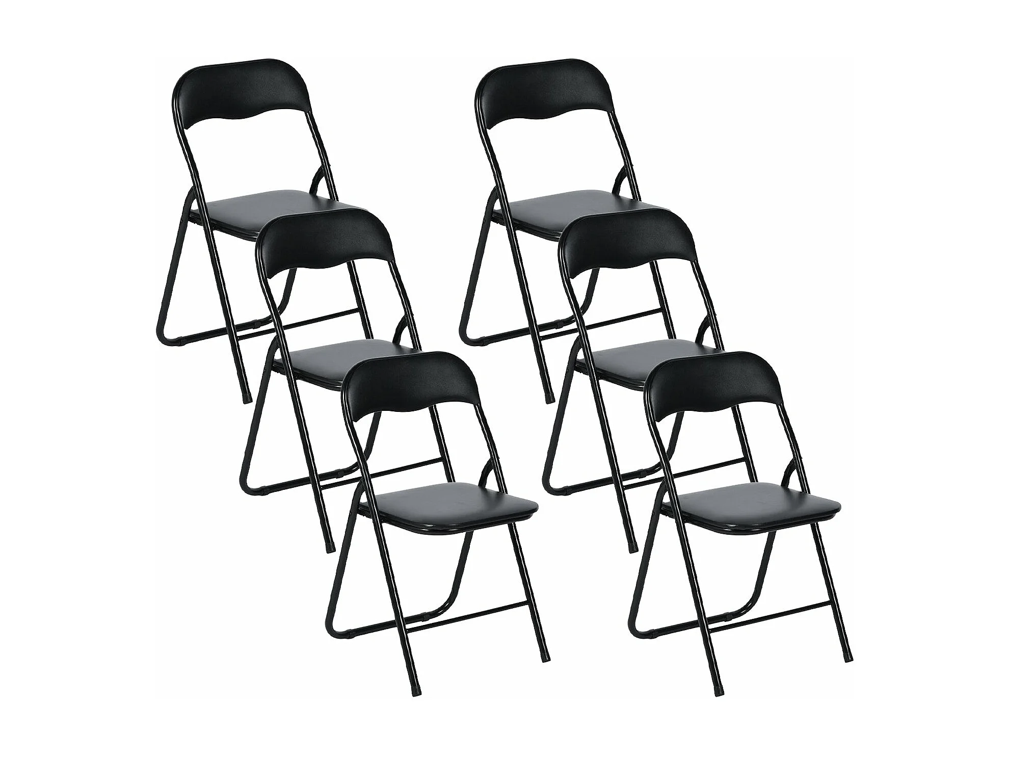 Lot de 6 Chaises Pliantes Noires en Coussin de siège en PU et pieds en métal Style Industriel