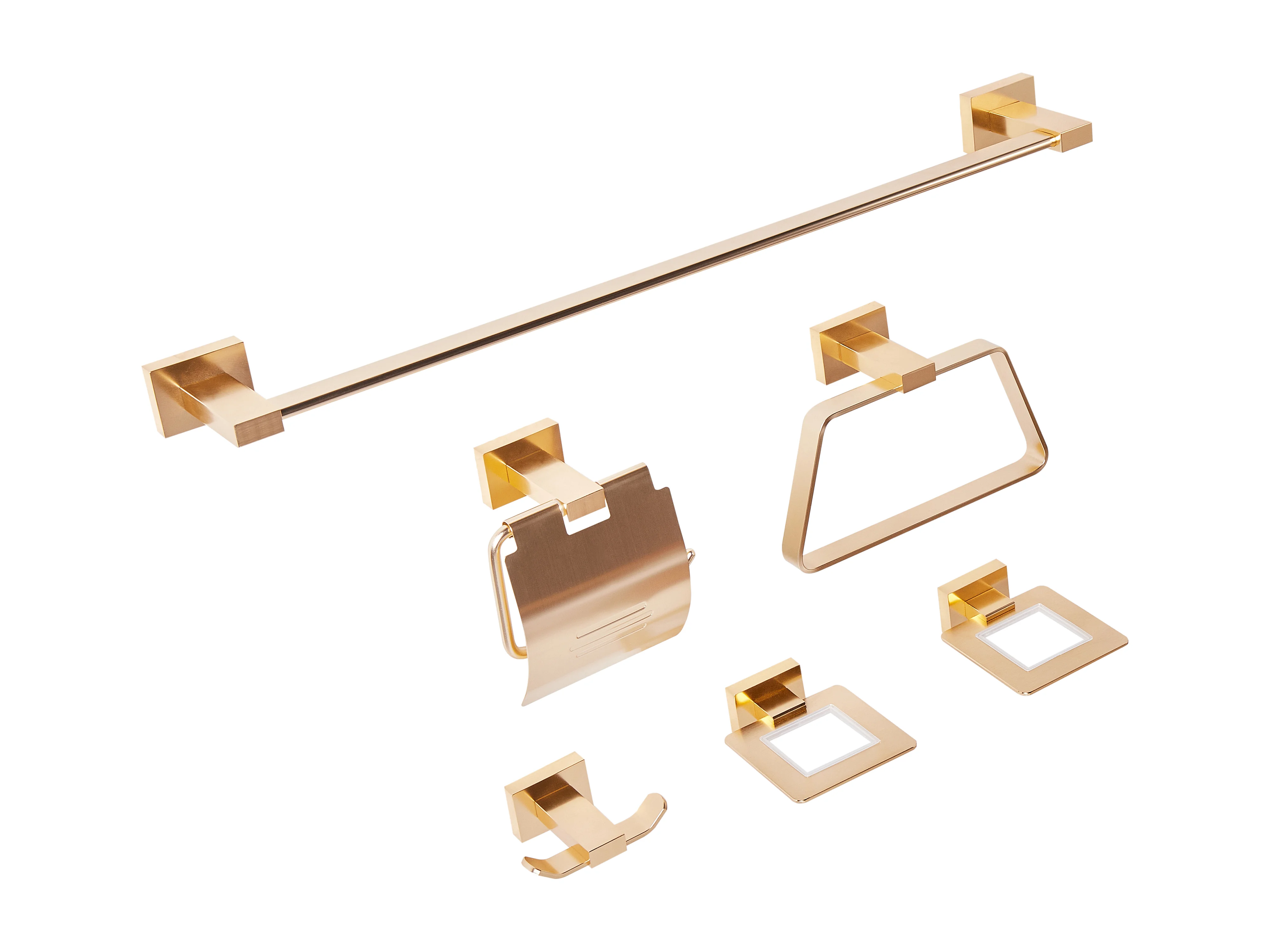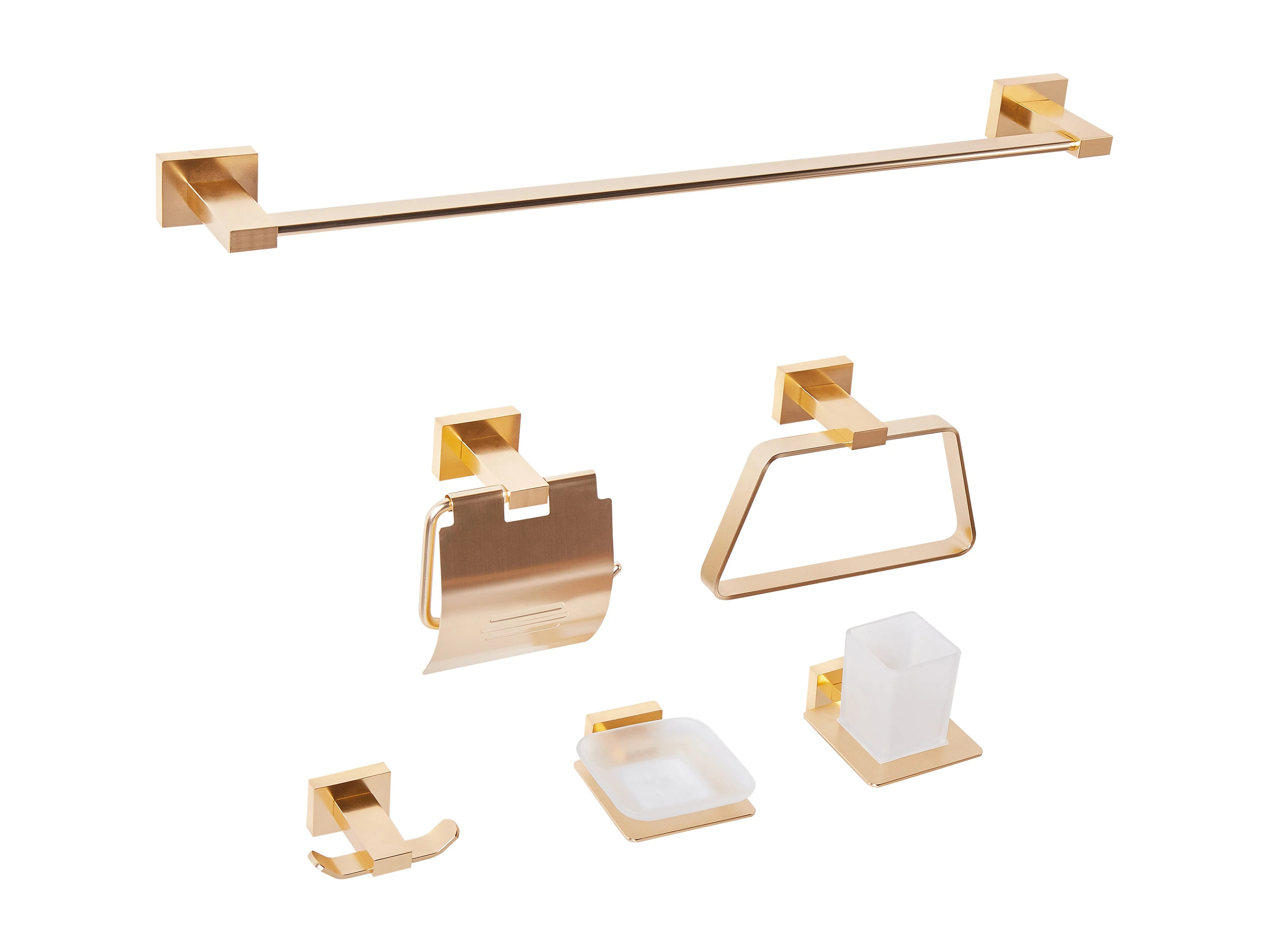 Lot de 6 pièces de quincaillerie pour salle de bain RIOHACHA avec porte-serviettes et crochets Doré