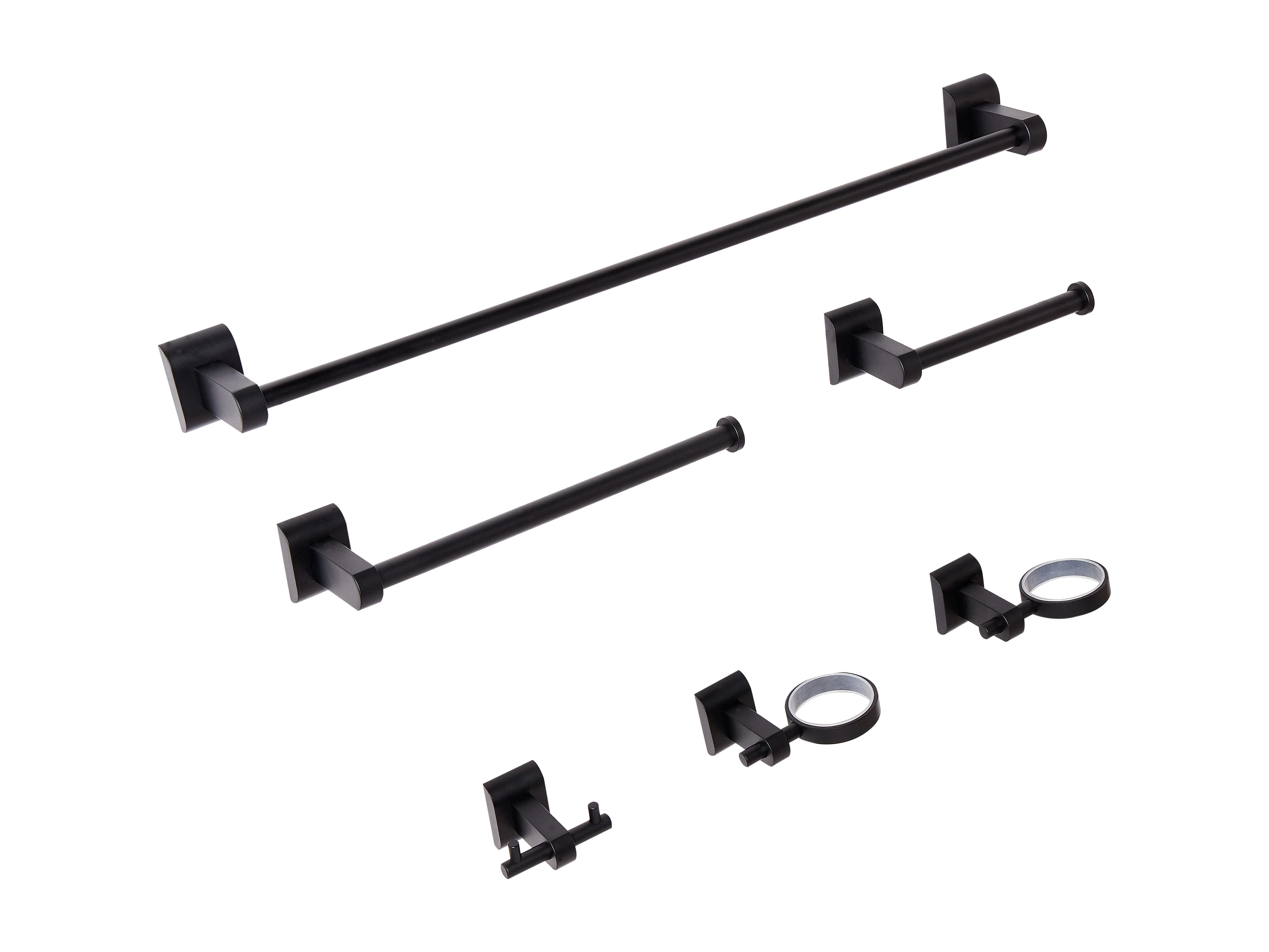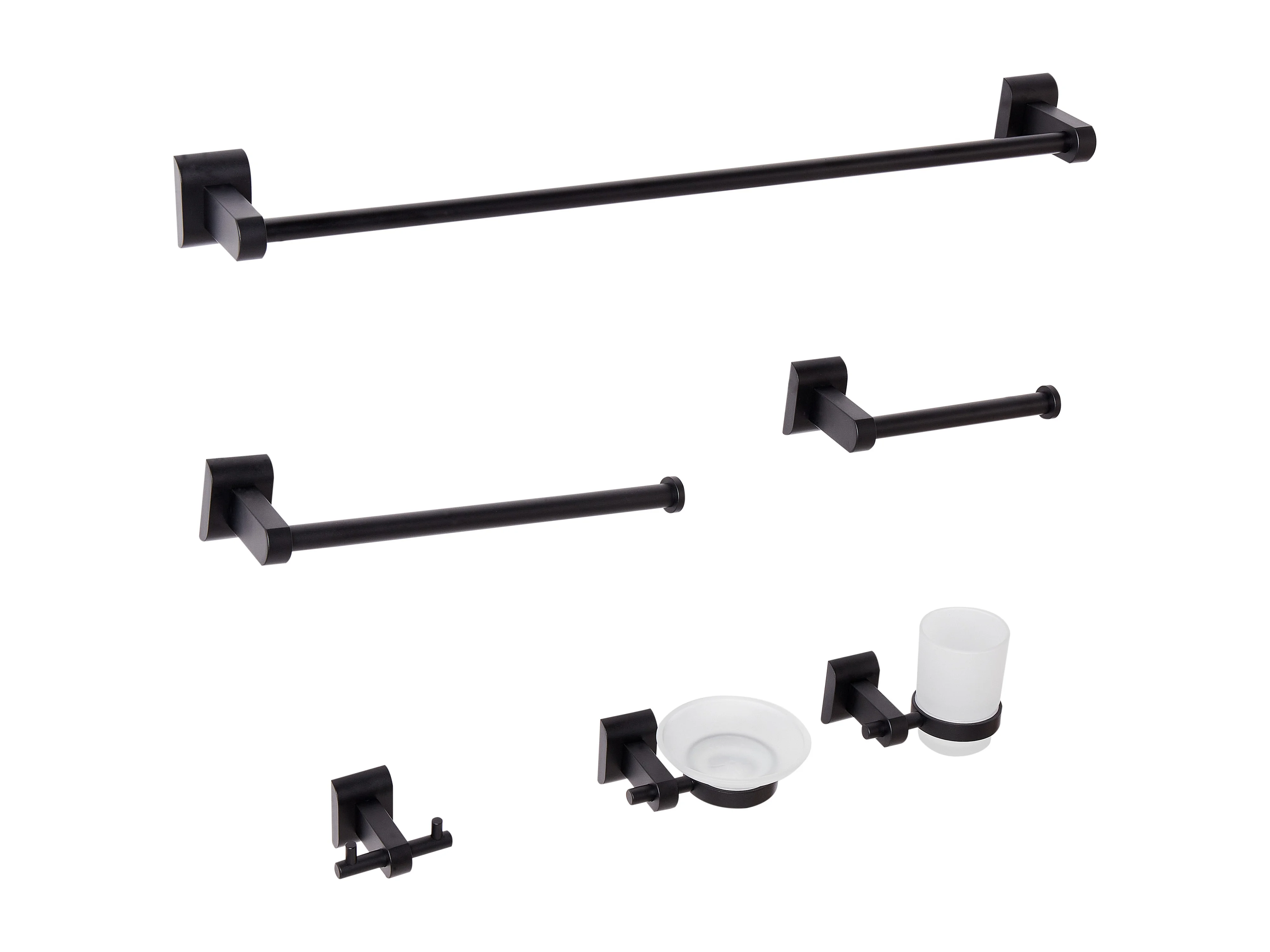 Lot de 6 pièces de quincaillerie pour salle de bain TOCOPILLA avec porte-serviettes et crochets Noir