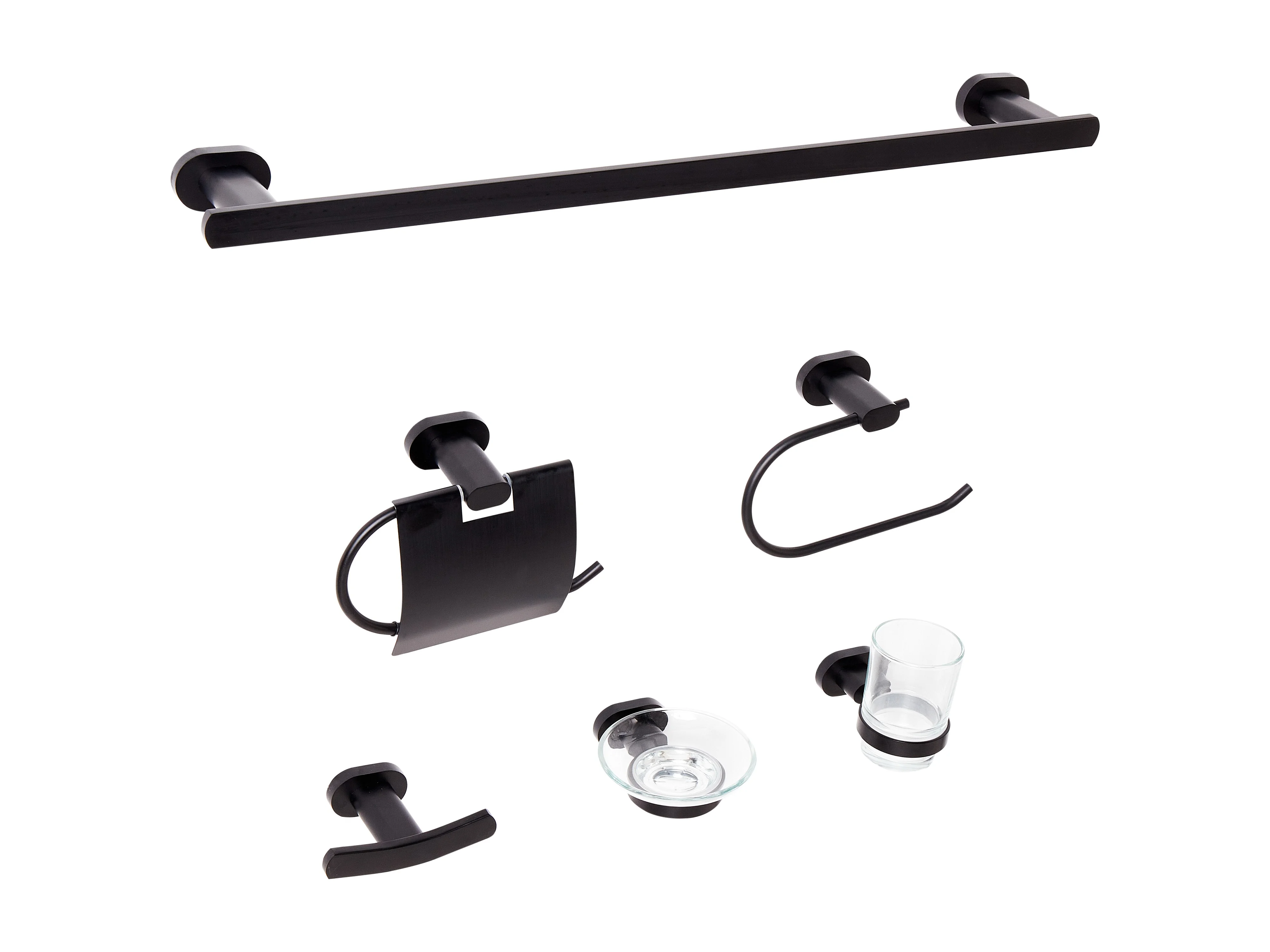 Lot de 6 pièces de quincaillerie pour salle de bain RIOHACHA avec porte-serviettes et crochets Noir