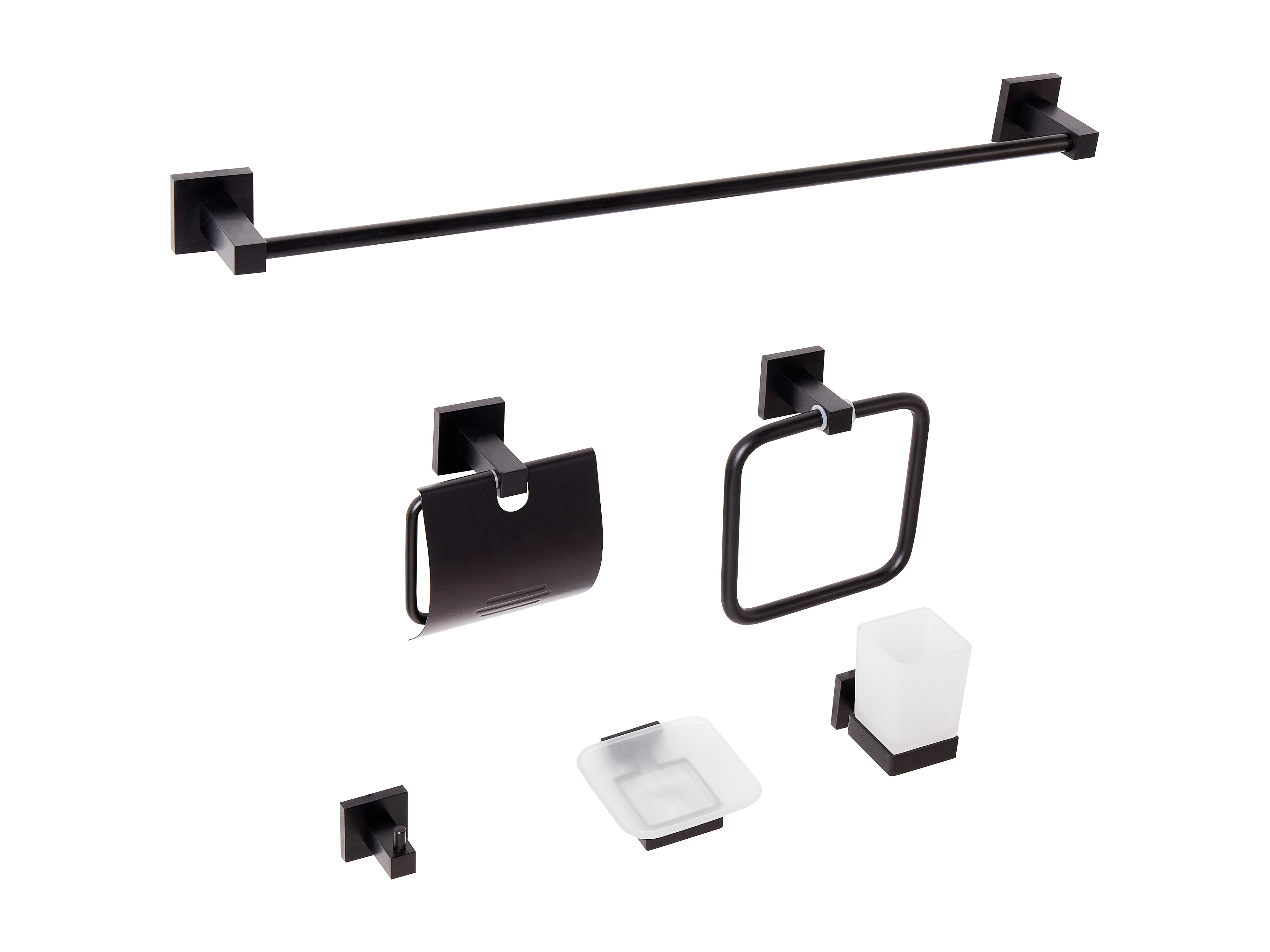 Lot de 6 pièces de quincaillerie pour salle de bain TUMACO avec porte-serviettes et crochets Noir