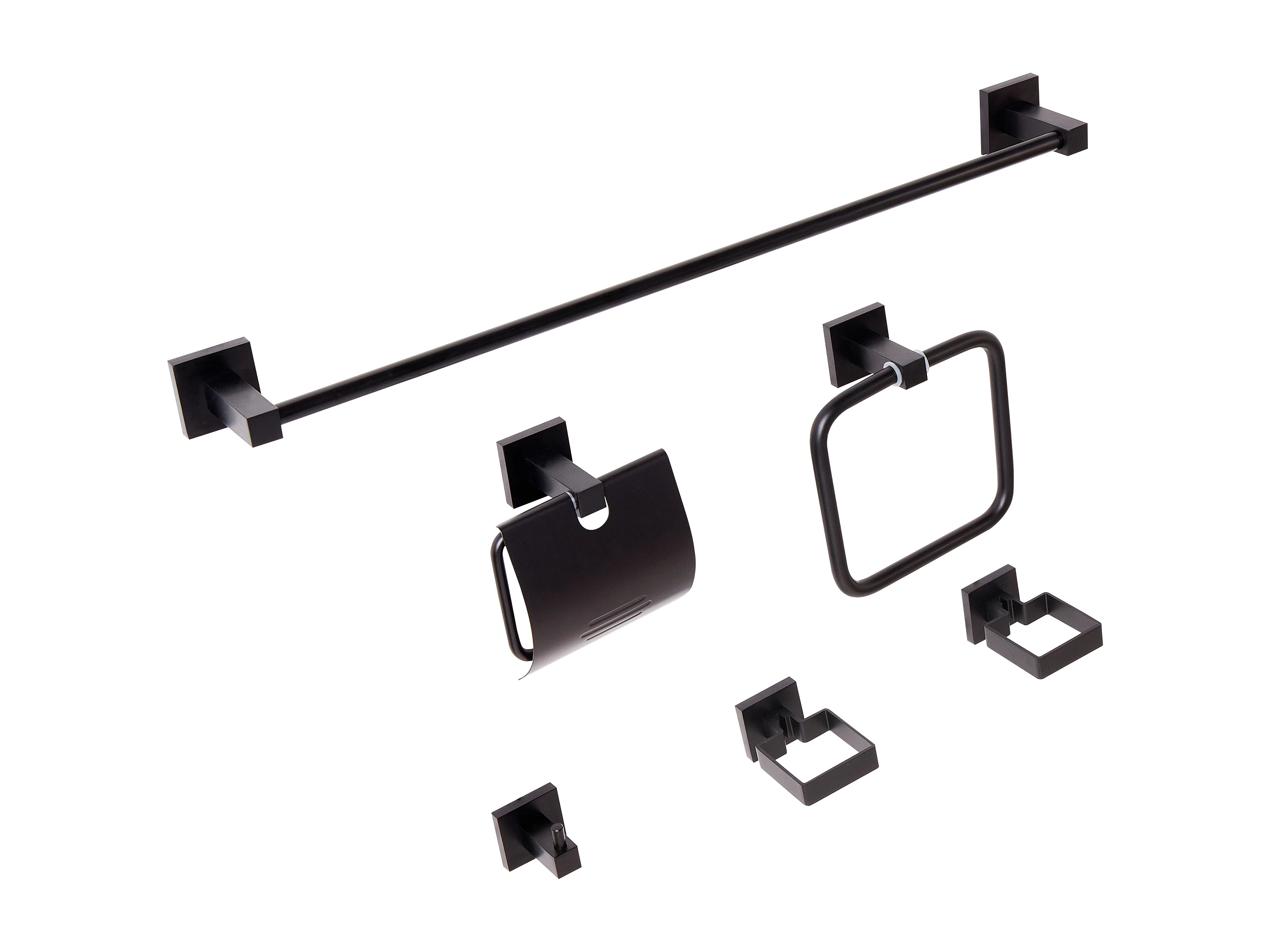 Lot de 6 pièces de quincaillerie pour salle de bain RIOHACHA avec porte-serviettes et crochets Noir