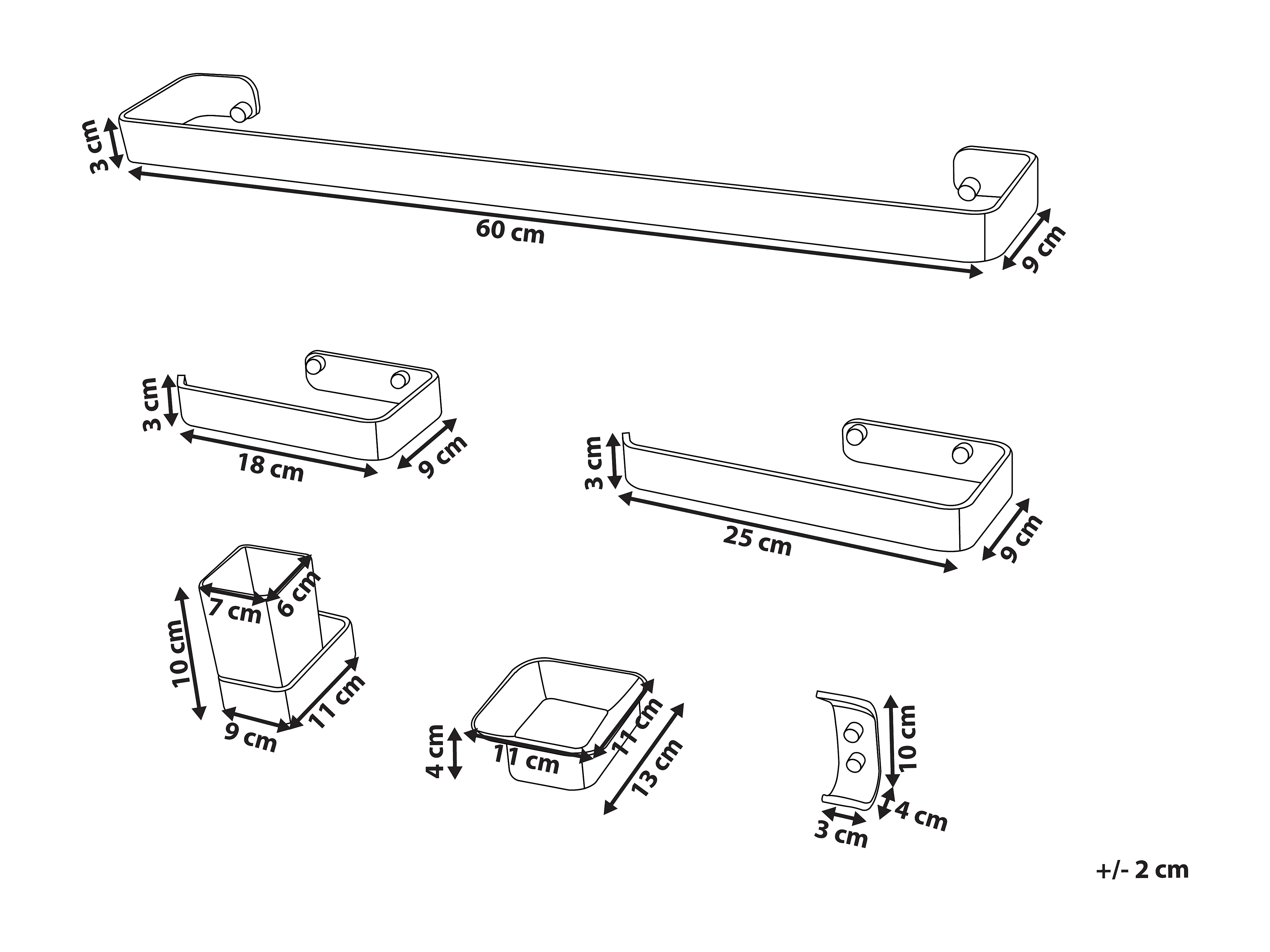 Lot de 6 pièces de quincaillerie pour salle de bain PARACAS avec porte-serviettes et crochets Noir