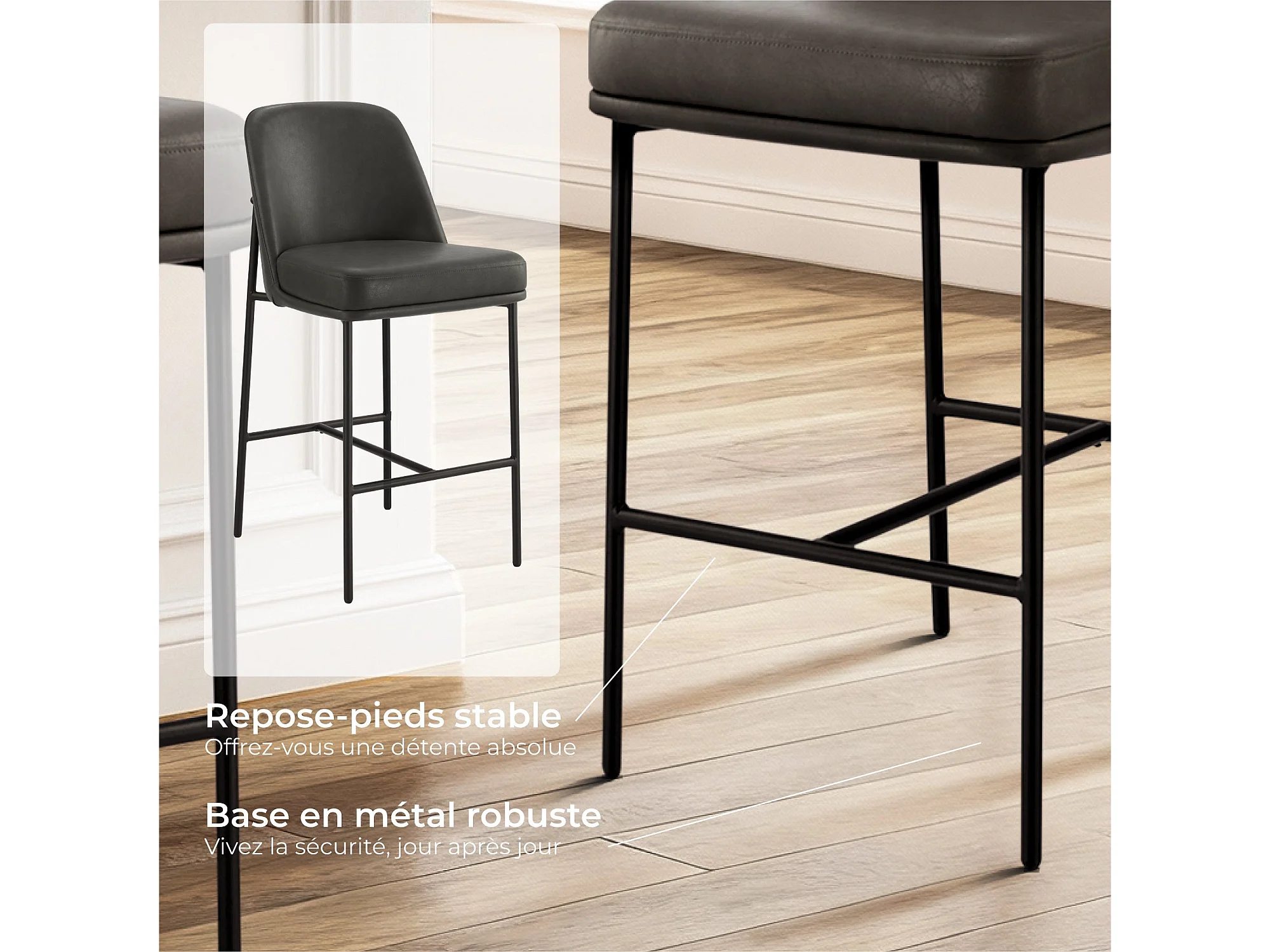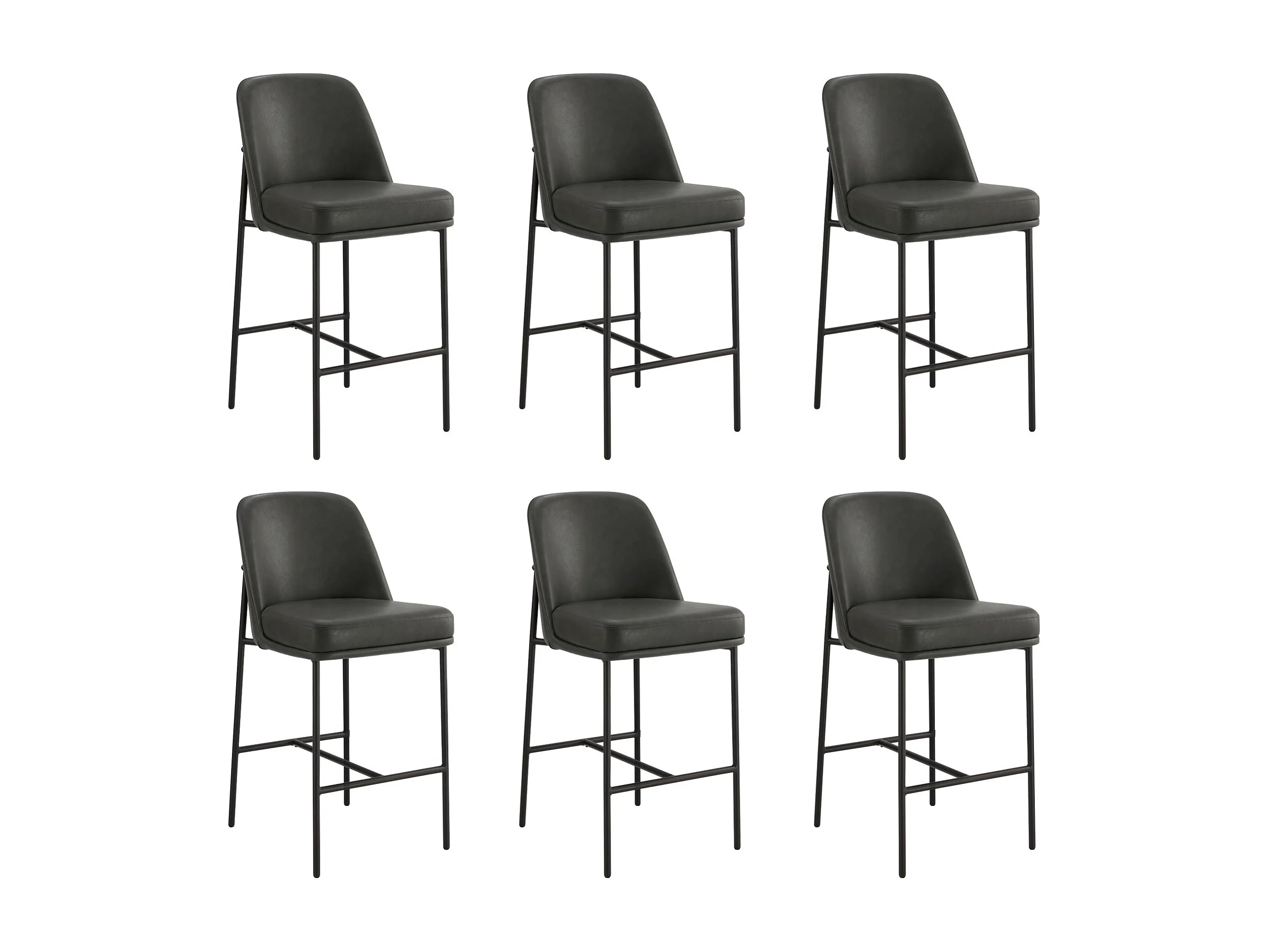 Lot de 6 Tabouret de Bar,en PU, avec Dossier et Repose-Pieds, Hauteur 97 cm-Marron