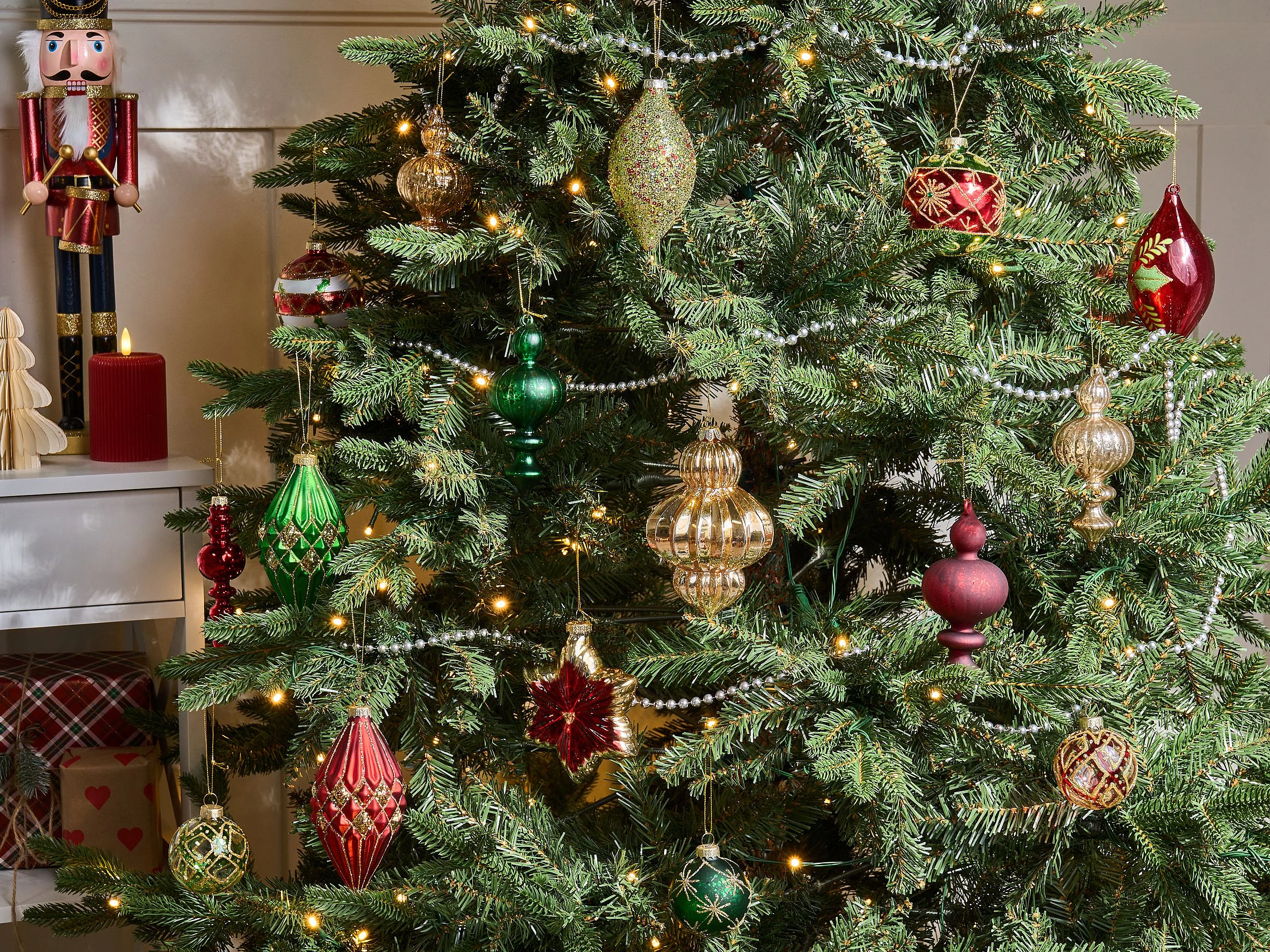 Déco de Sapin de Noël Kit 44 pièces, Boule, Guirlande et Cimier - Vert Rouge et Or